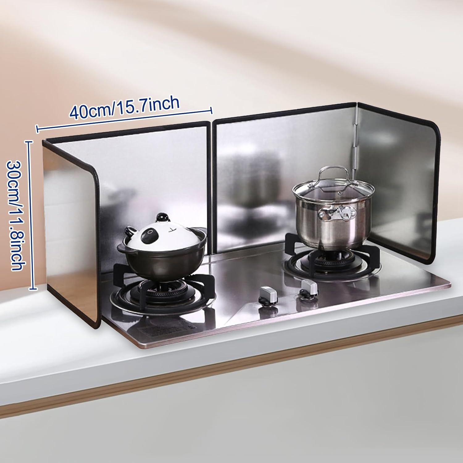 - Easy to clean Splash Guard:stainless steel surface makes it more easily to be cleaned. After using the oil splatter guard backsplash panel, just use a wet cloth to bedew with warm soapy water or detergent, then wipe on the steel plate directly or rinse under the running water, keep your kitchen clean and tidy and save the time and effort of wiping kitchen grease.