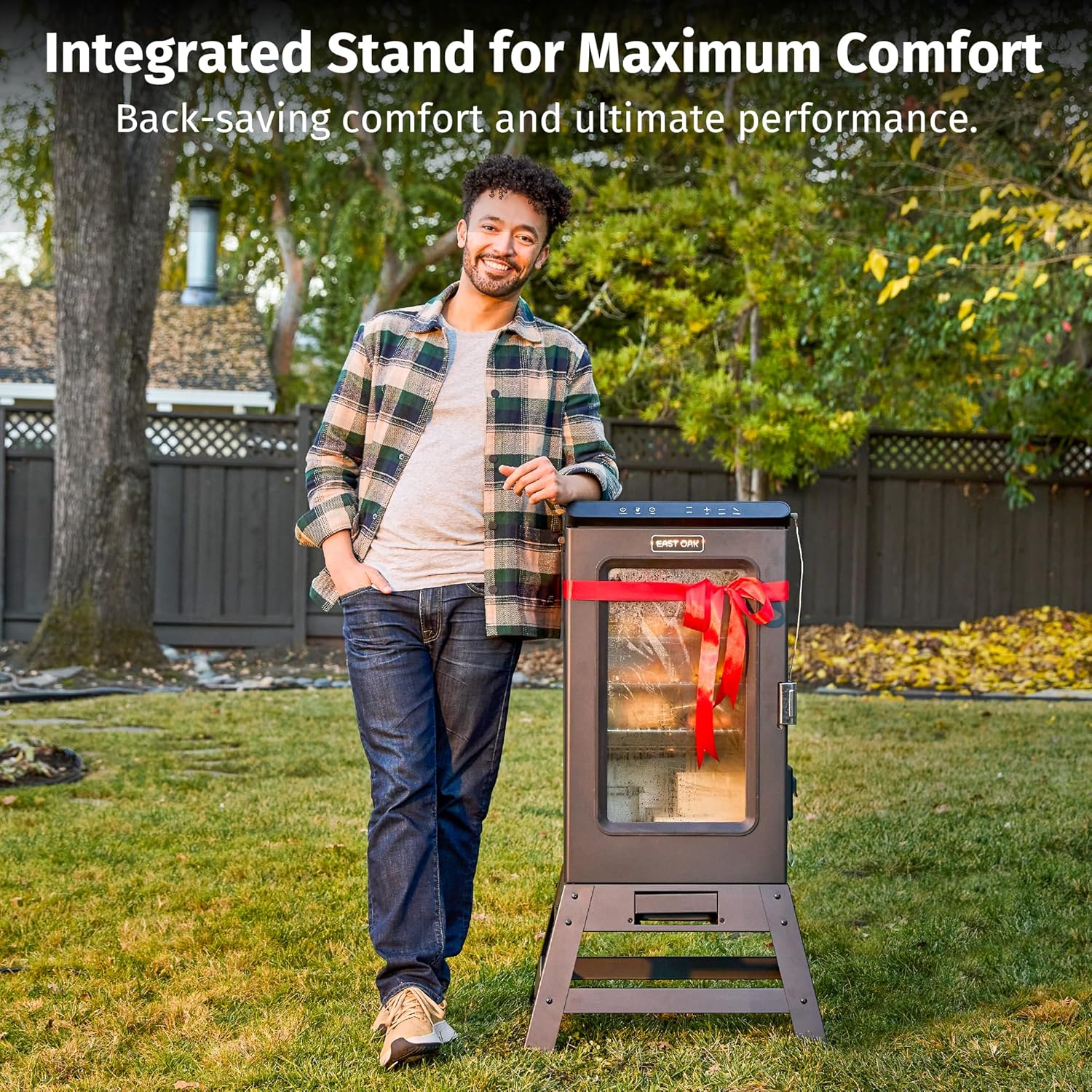 - NO MORE KNEELING AND SQUATTING – The elevated stand raises your outdoor smoker to a comfortable height, so you don’t have to crouch down to check your food or adjust settings. Better ergonomics, better experience—especially for all-day smokes