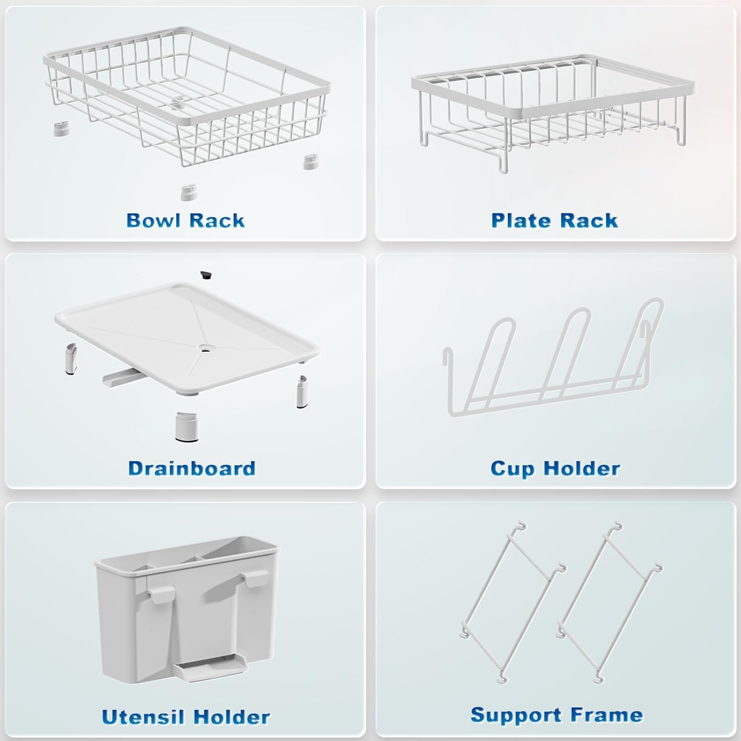 - EASY TO INSTALL: GAOKASE dish racks for kitchen counter consist of a utensil holder, a dish rack, a sponge rack and a drainboard set, easy to install as no tool is needed. The compartmentalized utensil holder is removable, which means you can place the dish rack in any direction you need.