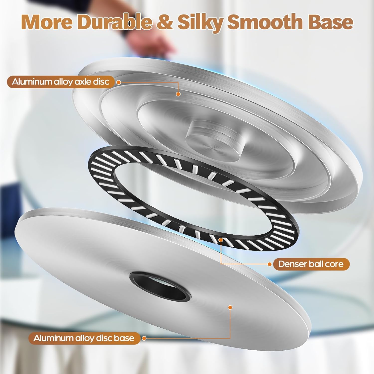 - 【DOUBLE-LAYER ALUMINUM PLATE】Double-layer aluminum plate makes the table and base firmly connected together, durable and stable rotation to prevent your tableware from tipping over, strong aluminum core ensures smooth rotating movement.