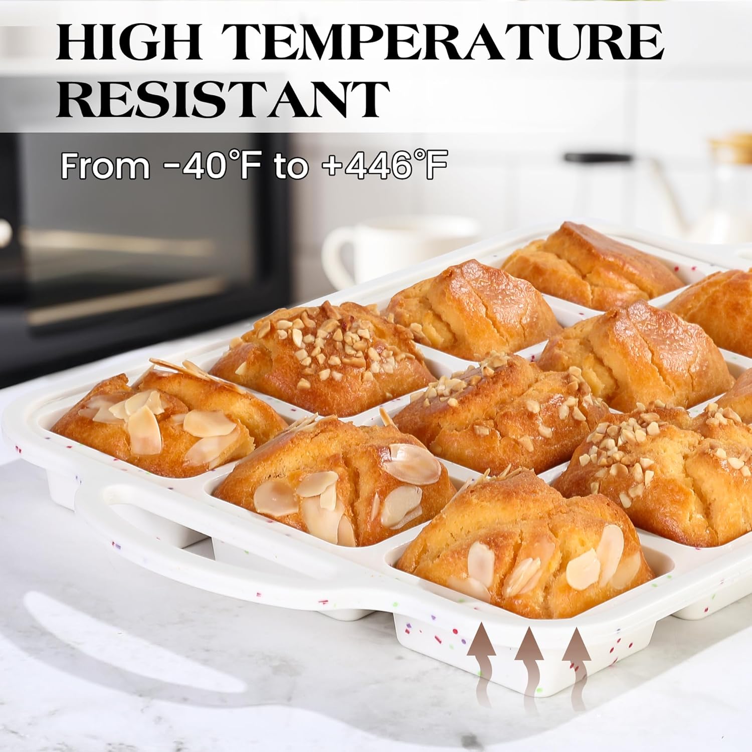 1 Pc Brownie Pan With Dividers Silicone Nonstick Mini Individual 12 Cup Square Muffin Cupcake Pans with Metal Frame(Cream)