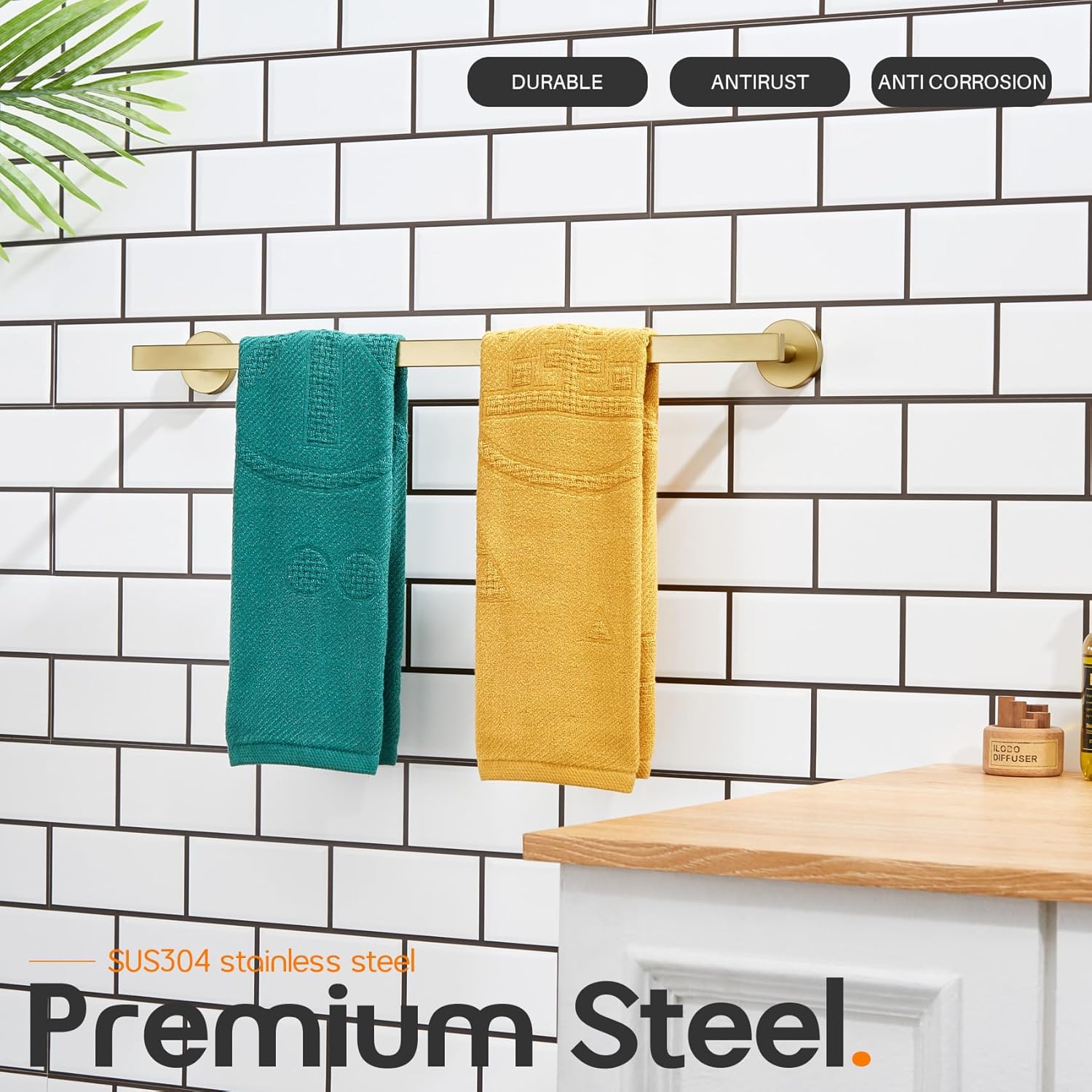 24 Inch Bathroom Towel Bar Bath Towel Rack Kitchen Towel Holder Towel Rails Wall Mounted SUS304 Stainless Steel 2 Pack Brushed Gold AN4001GD-L24-P2