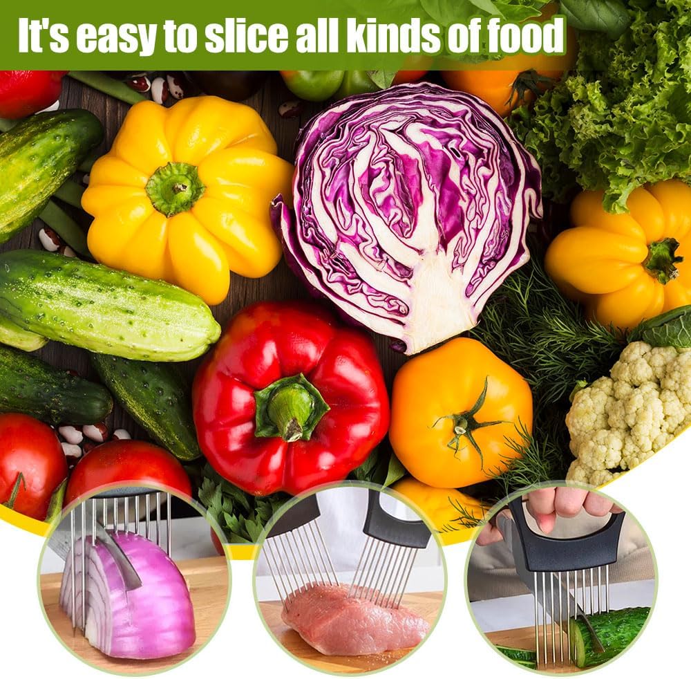 - 🔥【2024 New Onion Holder for Slicing】Crafted from premium 304 stainless steel, the onion holder is built to withstand the rigors of daily kitchen use, providing long-lasting durability.