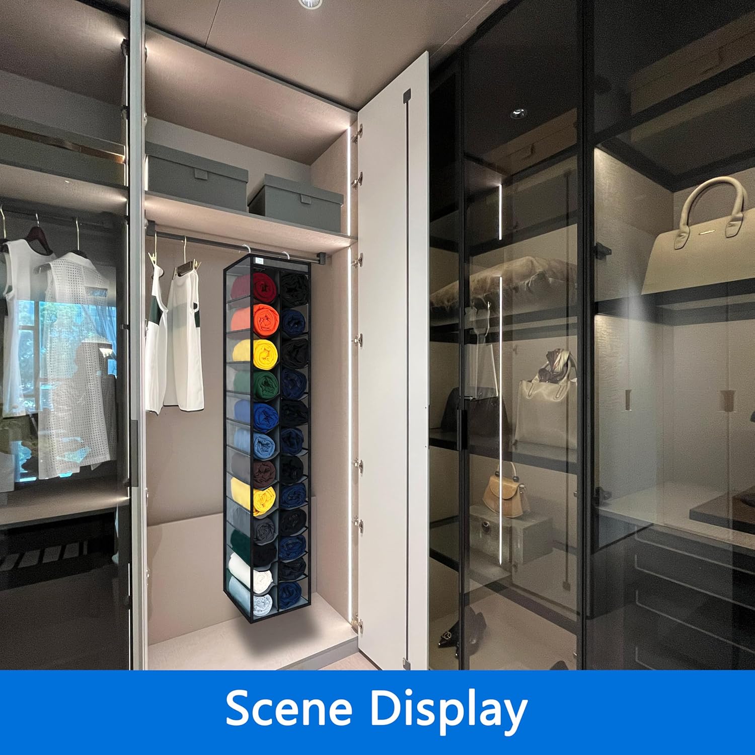 - 【Ample Storage Space】hanging closet organizer, 24 compartments, this closet organize provides plenty of room for all your clothes and other accessories,Free up space for your closet, cloakroom, wardrobe, dormitory, and more. Or take this foldable bins in rv trip, hiking and camping closet organizers and storage.