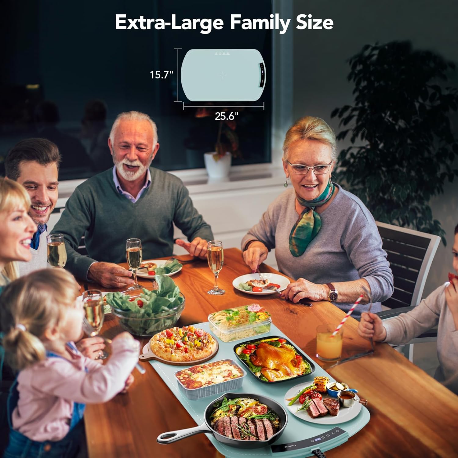 - [Customized Comfort] Dial in the perfect temperature with our 9-level temperature-controlled food warming mat. The 12-hour auto shut-off feature ensures convenience and caters to a variety of food preferences for a smooth dining experience