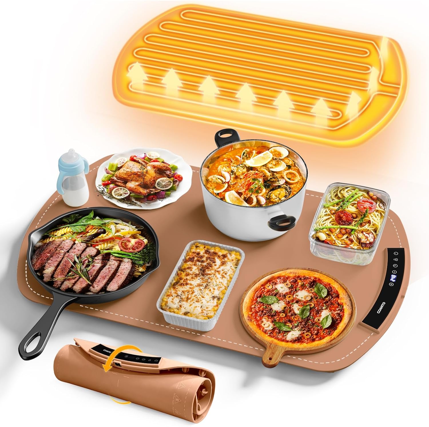 - [Effortless Warming Power] Say goodbye to cold dishes with our food warming mat. COANTO food warming mats for countertop delivers rapid and uniform heating across a large area, perfect for social dining and get-togethers. No more cold spots or waiting around for food to warm up