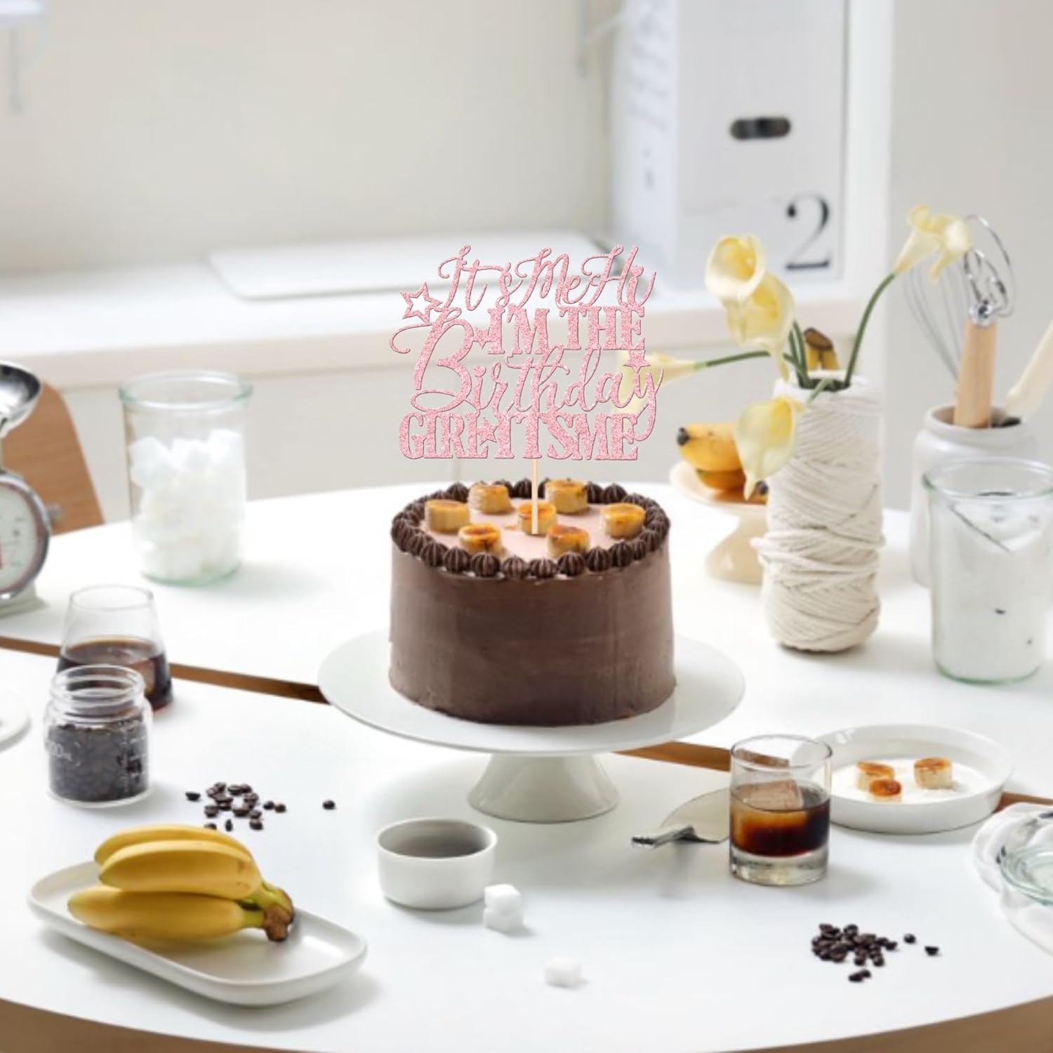 1 PCS It's Me Hi I'm the Birthday Girl It's Me Cake Topper Glitter Funny Girls Birthday Cake Pick for Hot Pop Music Singer Birthday Party Cake Decorations Supplies Light Pink