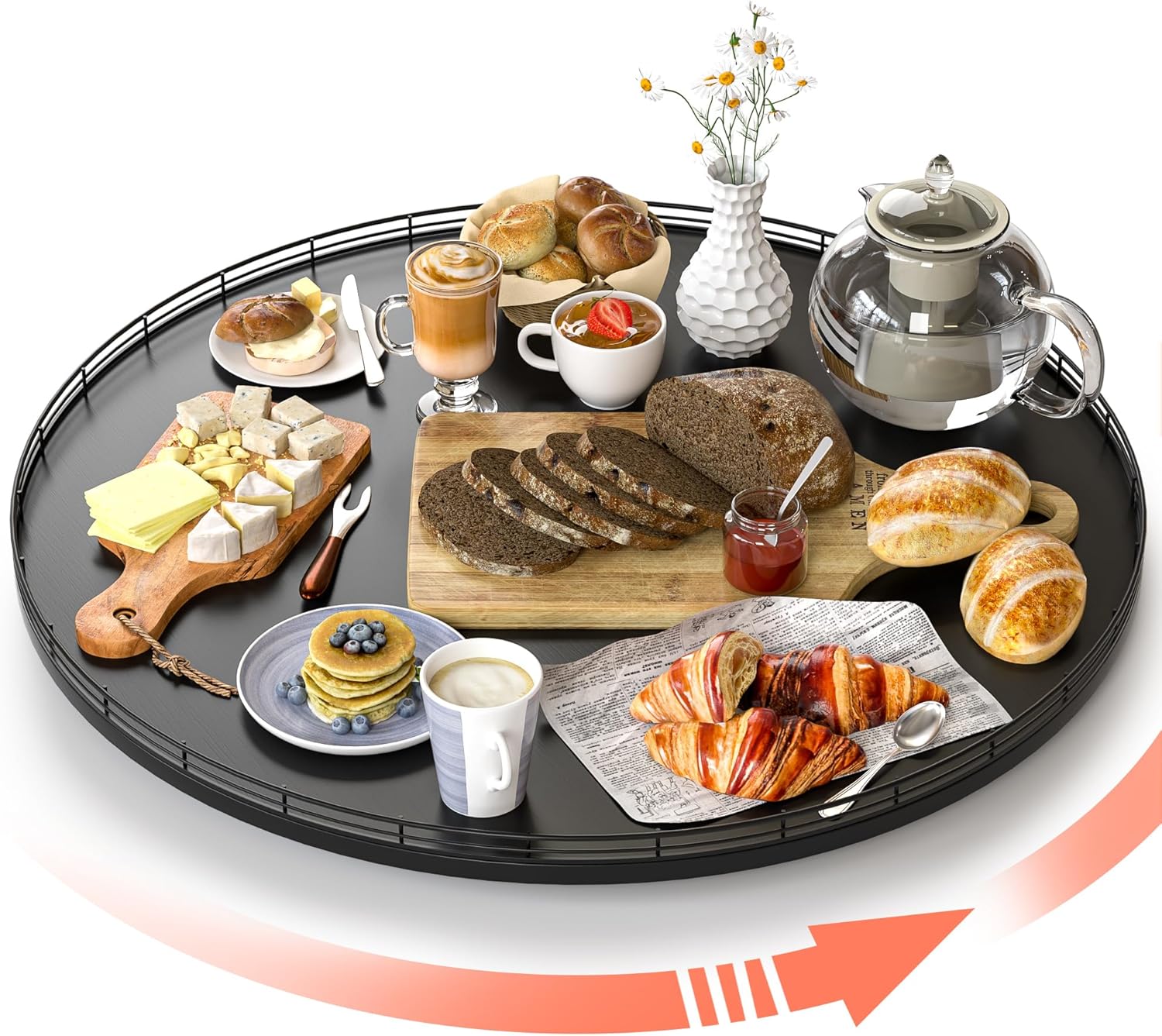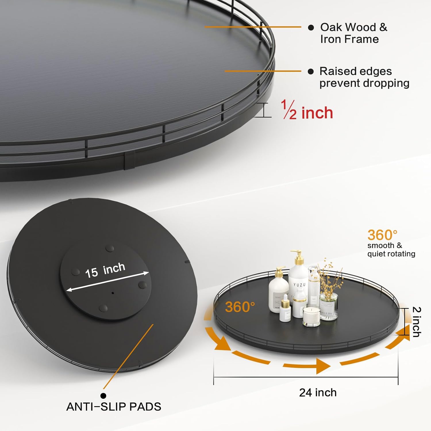 24" Oak Wooden Lazy Susan Turntable for Dining Table, Extra Large Round Lazy Susans Organizer for Kitchen Countertop Charcuterie Boards Cheese Board Organization and Storage Black Home Decor