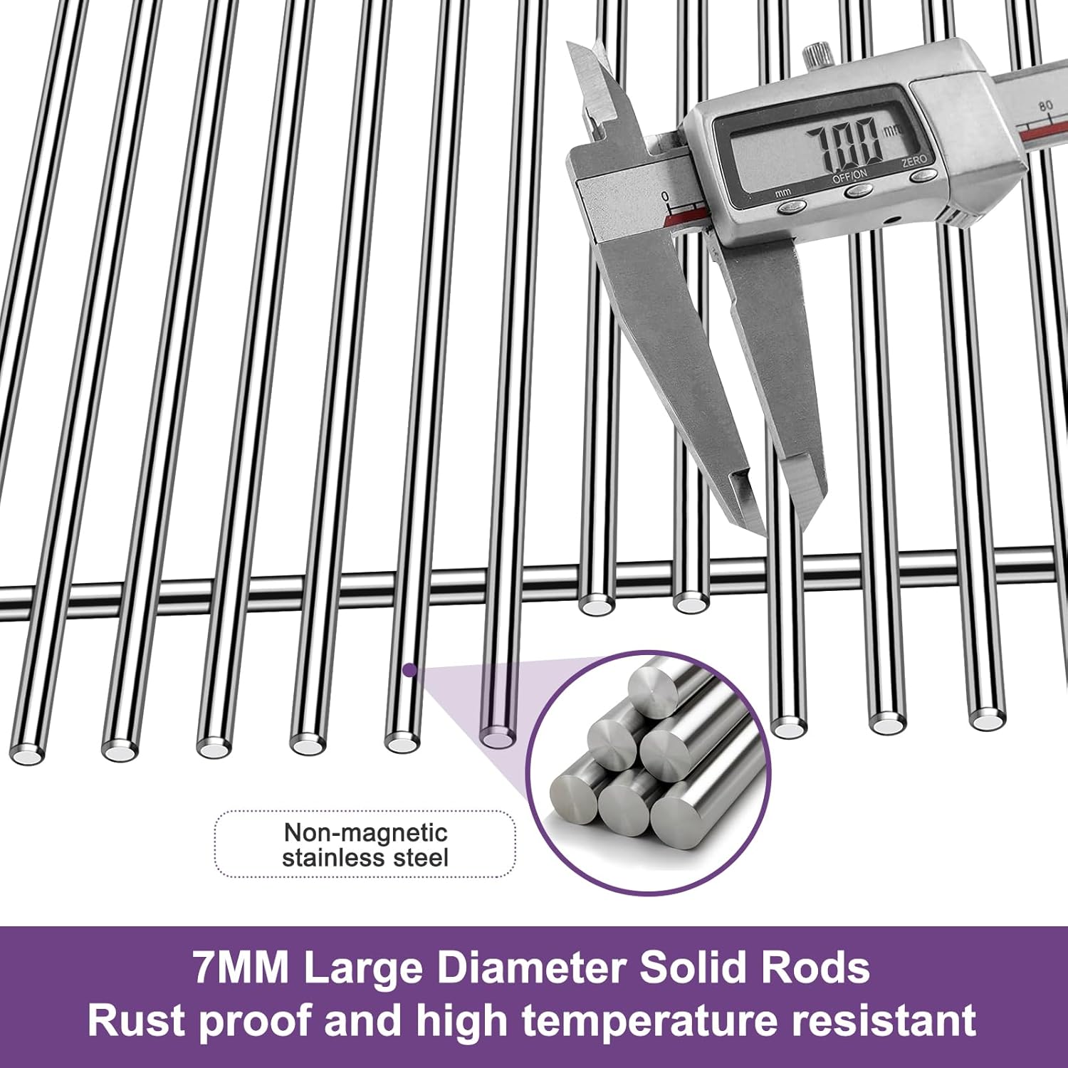 - Boloda High quality solid rods of stainless steel. These steels resist corrosion and maintain its strength at high temperatures. Thick is 7mm, More thicker and heavier than other brands, your barbecue grill won't wear out and rust after times of using.
