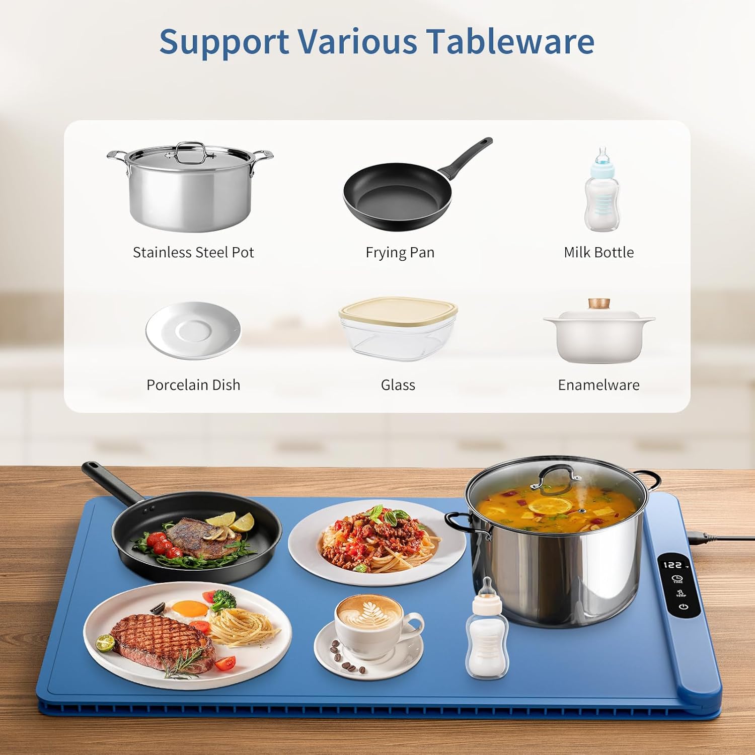 - 【Multi-Use for All Occasions】From daily meals to skincare mask warming, this versatile heating mat for food does it all. An essential catering food warmer for countertop use year-round, maintaining perfect temperatures for any event.