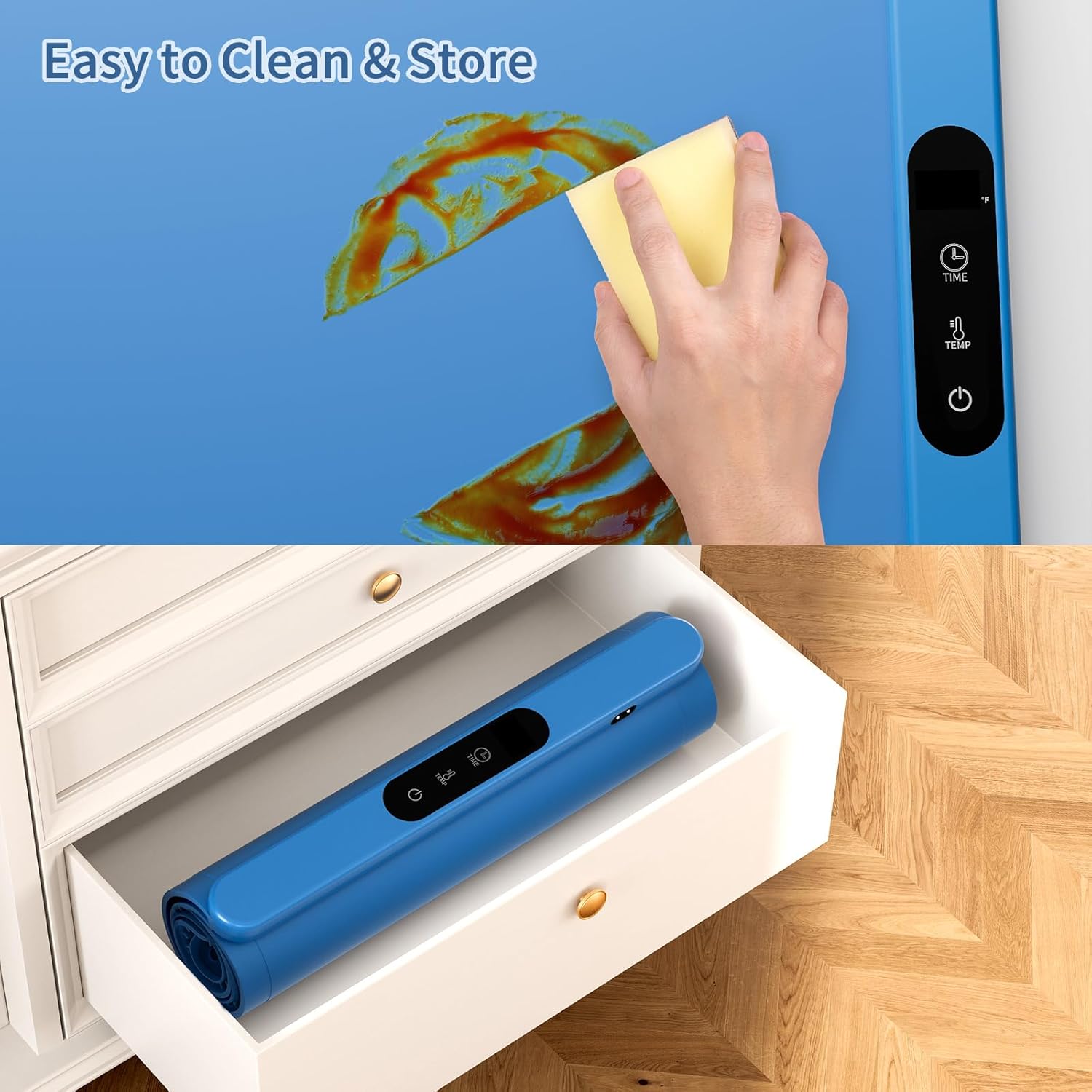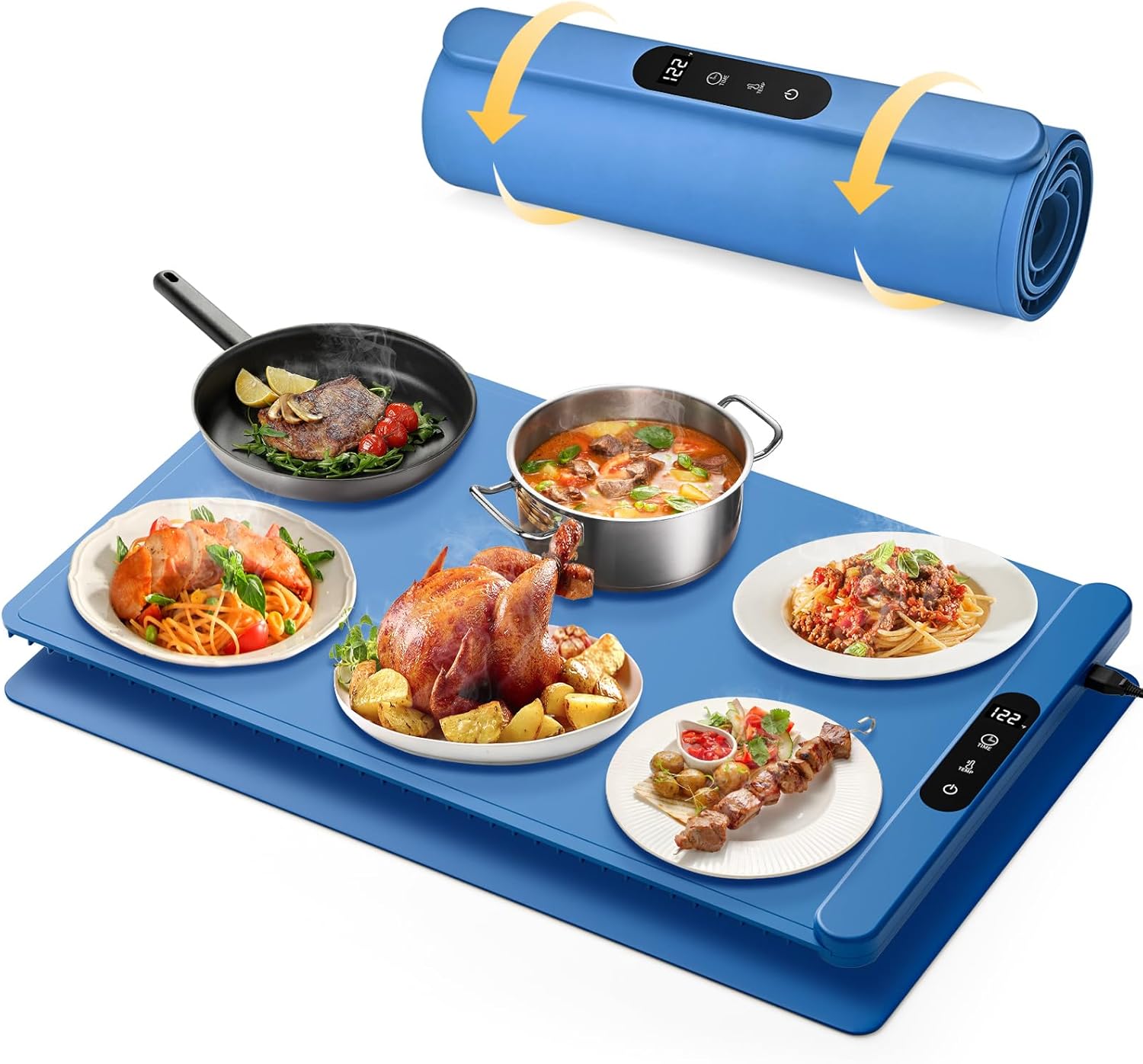 - 【Rollable & Super Easy-Clean】Store effortlessly! This flexible food warmer mat rolls smoothly without creases and fits in the included storage bag. The stain-resistant, food-grade silicone cleans in seconds - no scrubbing needed. A perfect portable food warmer for small kitchens!