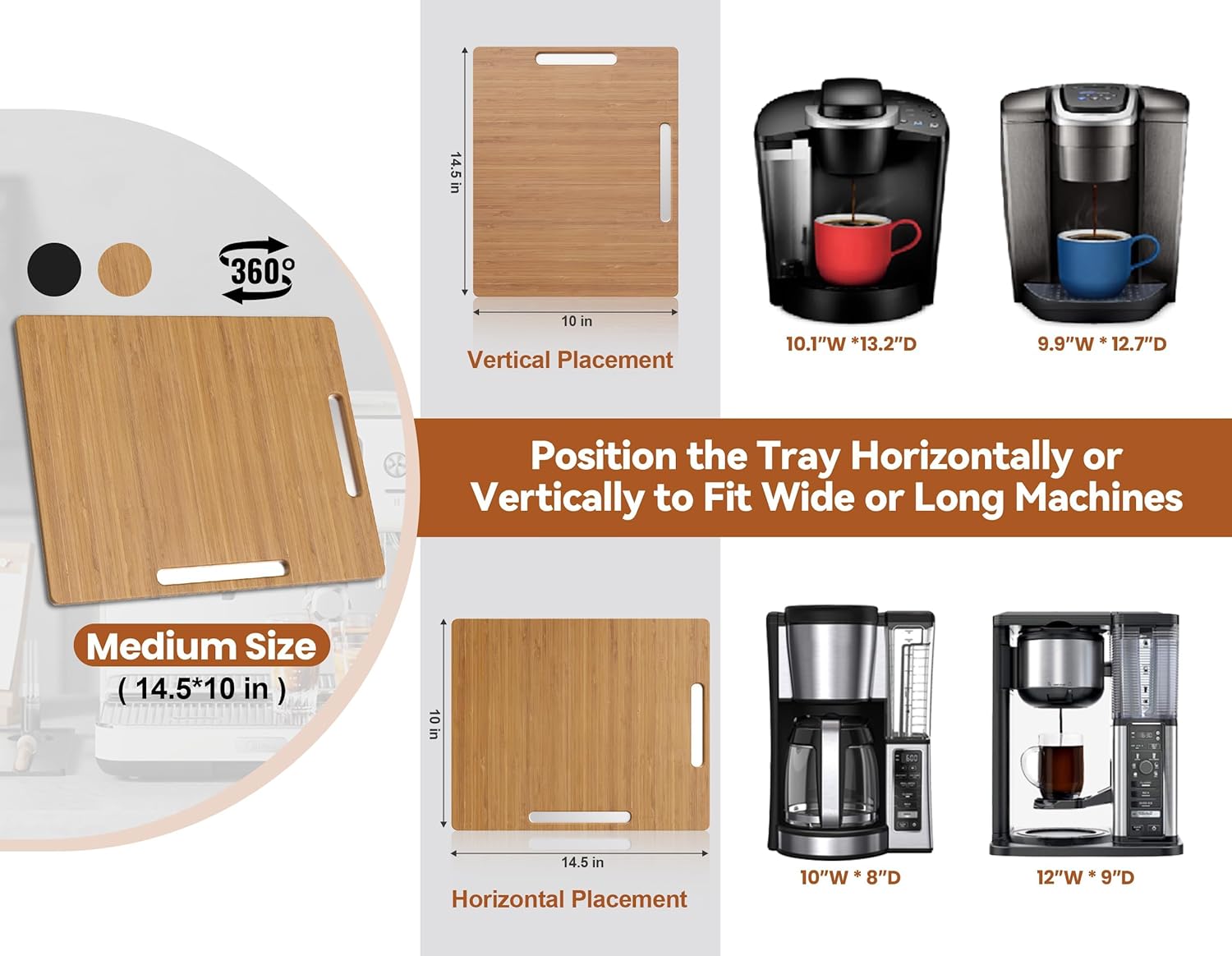 - Sturdy Sliding Coffee Tray: Crafted from high quality, thick bamboo, this sliding tray for coffee makers protects countertops with its smooth finish. Extra-strength crossing beams provide stable support for even heavy appliances, such as coffee makers and toasters