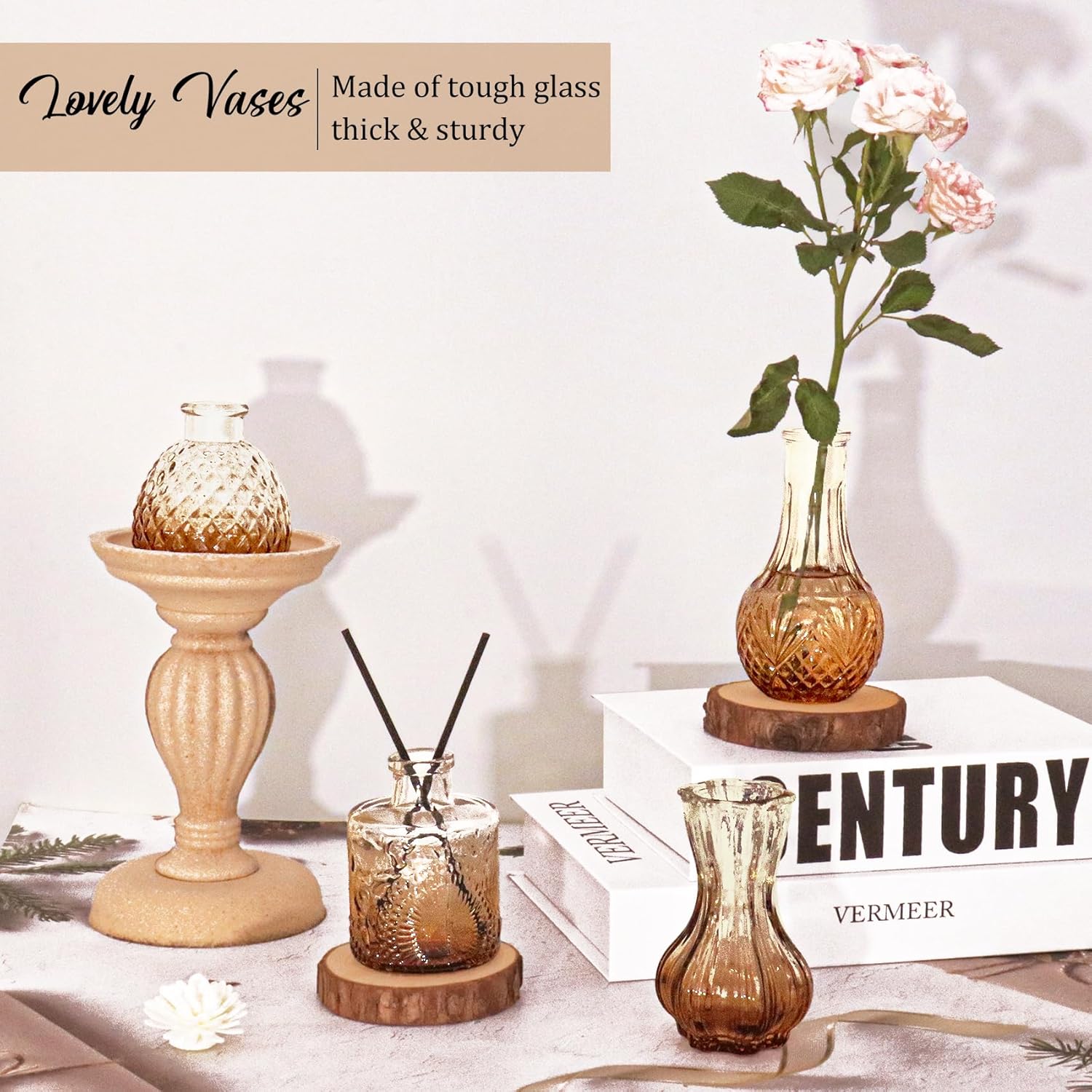 36Pcs Bud Vases Set Small Vintage Glass Bottles Bud Vases in Bulk Multiple Shape Cute Glass Vases for Rustic Wedding Centerpieces Table Decorations and Home Decor(Amber)
