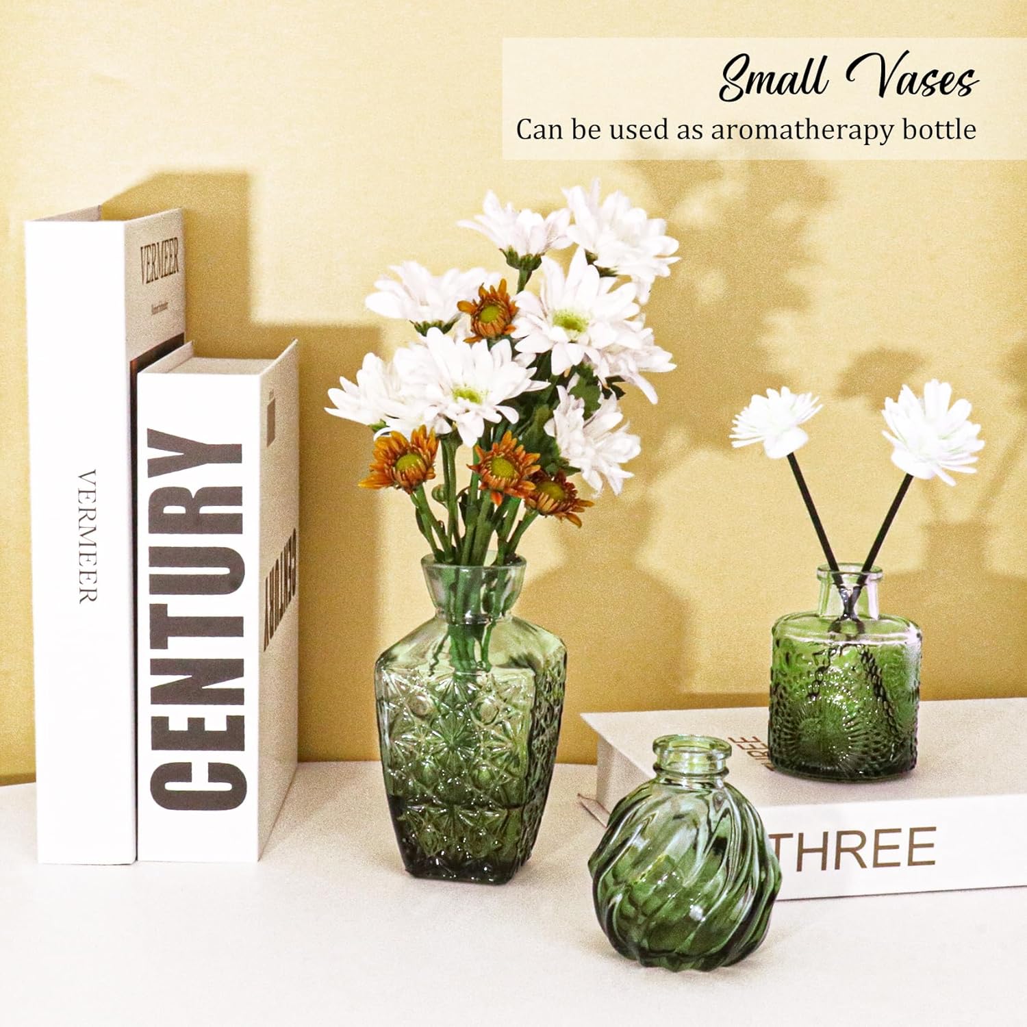 36Pcs Bud Vases Set Small Vintage Glass Bottles Bud Vases in Bulk Multiple Shape Cute Glass Vases for Rustic Wedding Centerpieces Table Decorations and Home Decor(Green)