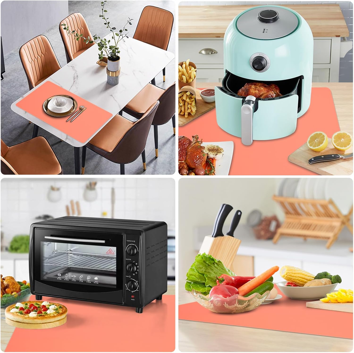 - Extra large silicone mat: Size of 48β x 24β, almost can fit most kitchen countertops, dining tables and other workbench. It can be placed under the air fryer, microwave, toaster oven, induction stove, coffee maker to protect the kitchen countertops and other surfaces against spills, scratches, grease, heat, etc. Itβs cuttable to fit different sizes and shapes.
