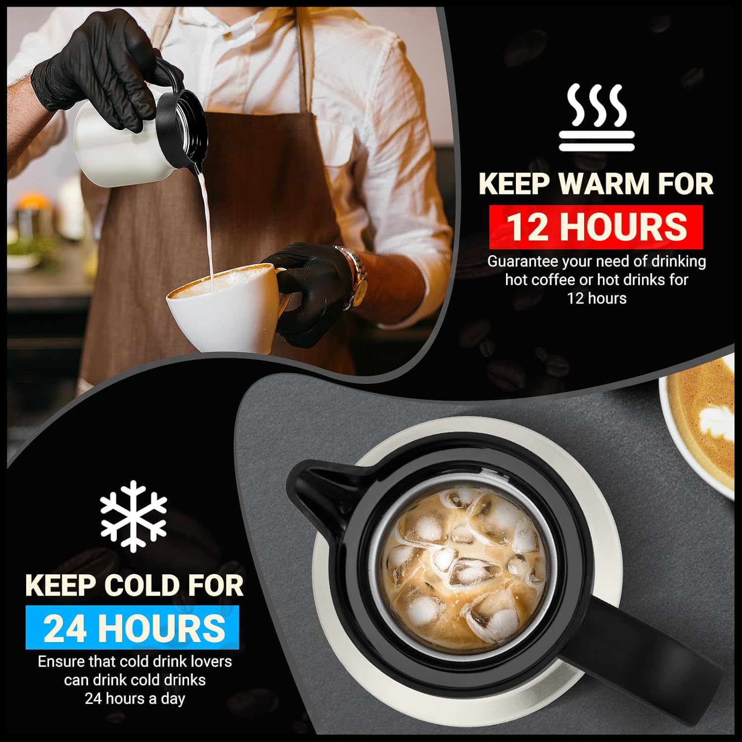 - Double-wall Vacuum Insulation: Perfect for hot water,hot cocoa, milk, or coffee, this double-wall vacuum insulated coffee carafe features advanced insulation to keep your drinks at the ideal temperature for hours