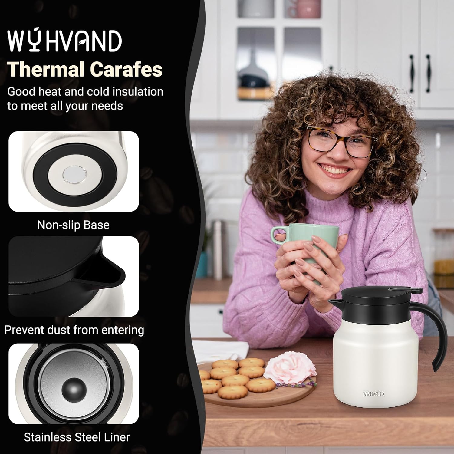 - Advanced Leak-Proof and Dust-Proof Lid: The innovative lid design on our thermal coffee carafe prevents spills and keeps beverages dust-free, ensuring maximum freshness and worry-free pouring