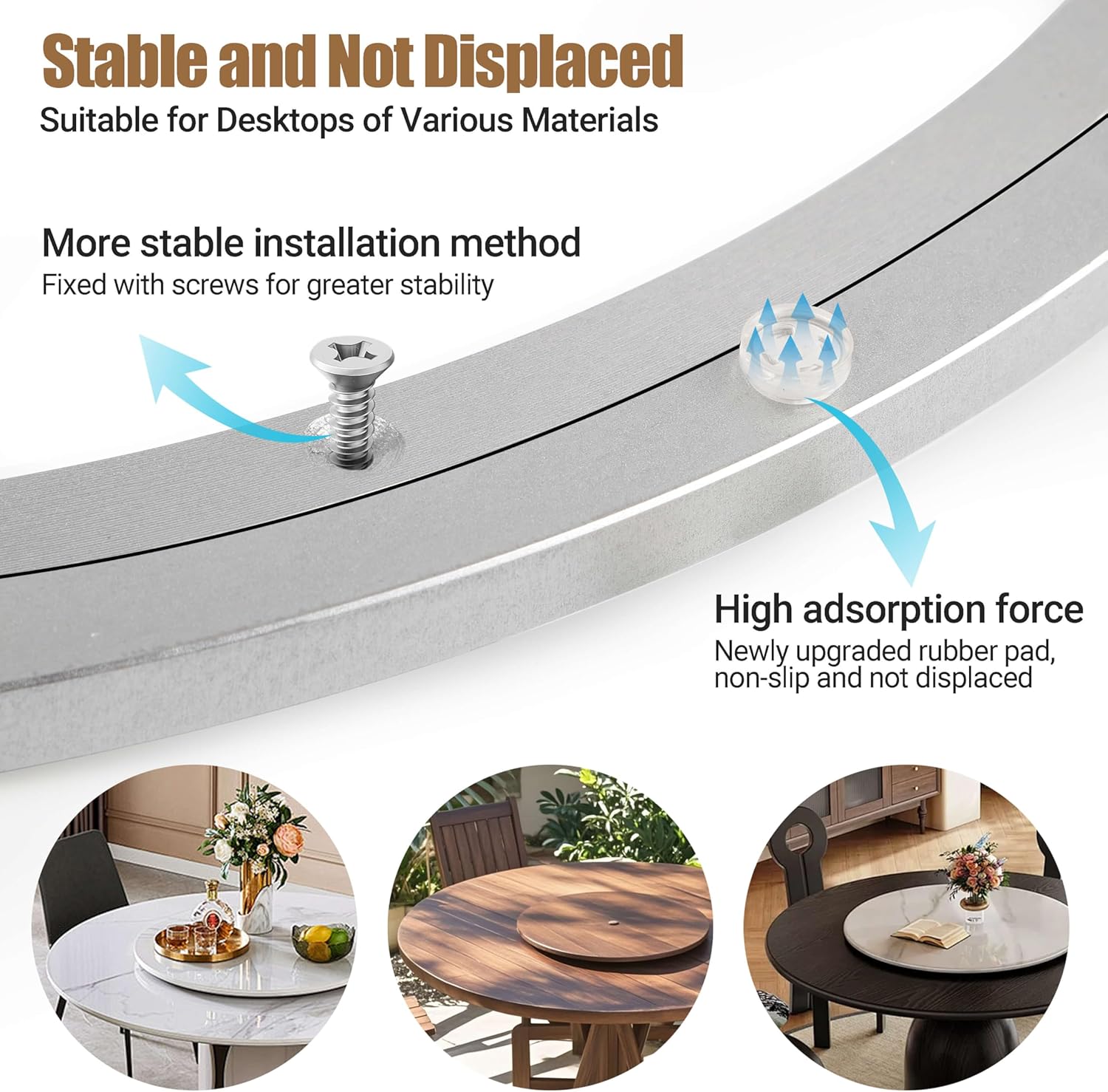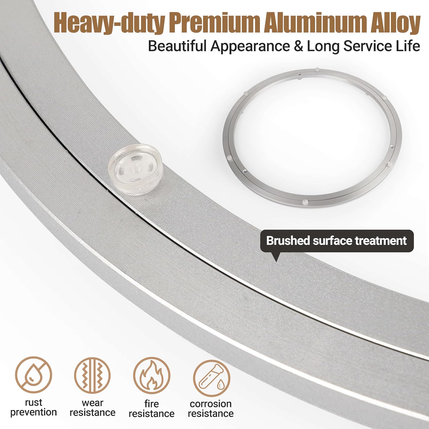 - Easy Installation: Simple place the aluminum alloy turntable on the countertop to create a rotating platform. We have reserved 3 pre-drilled holes, so you can also choose to fix it with screws