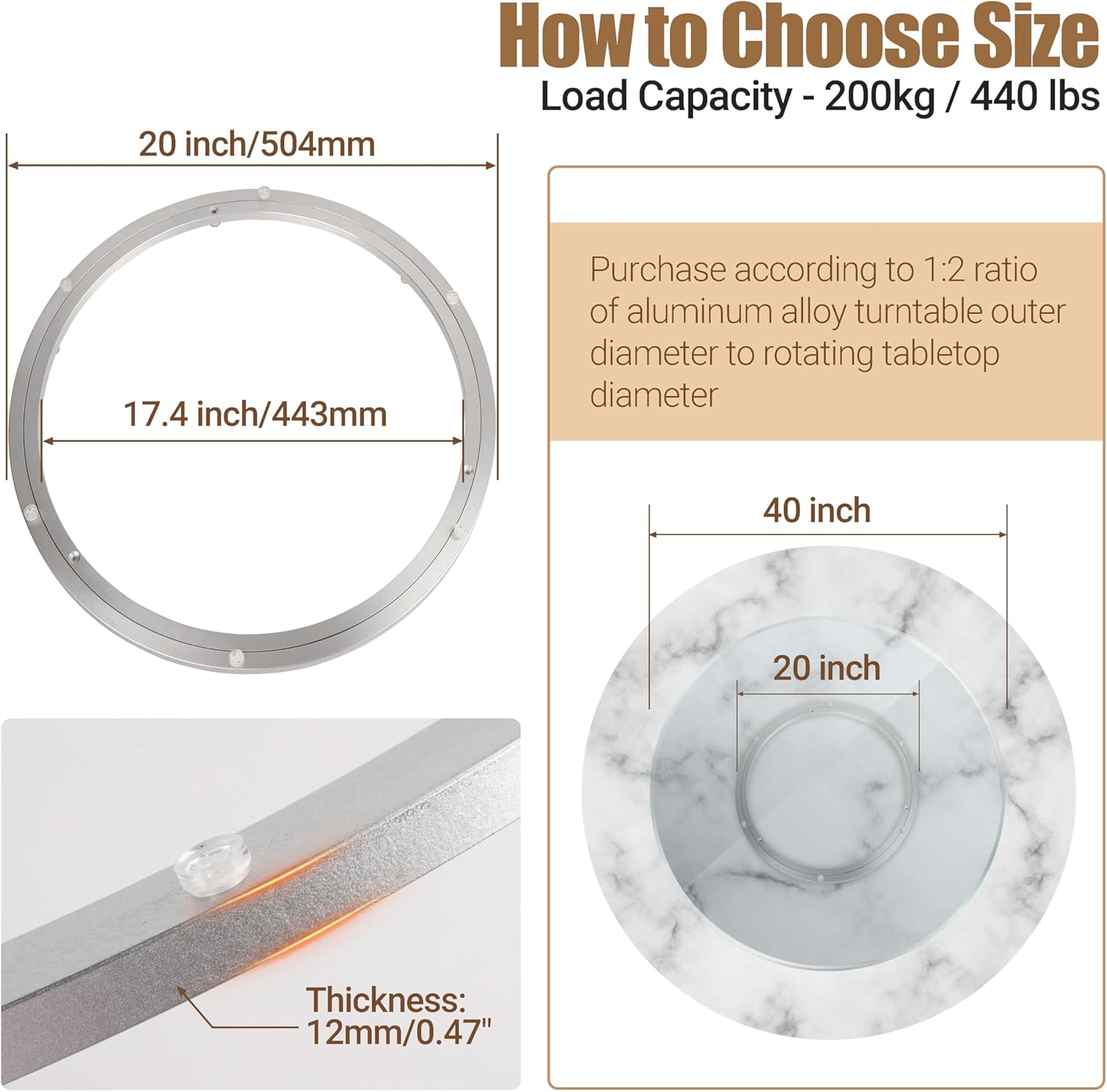 20 Inch Lazy Susan Bearing Heavy-Duty Aluminium Alloy Turntable Bearing, Mute Turntable Ball Bearing, Lazy Susan Rotating Turntable Bearing for Dining and DIY Dotating Furniture(Capacity up to 440lb)