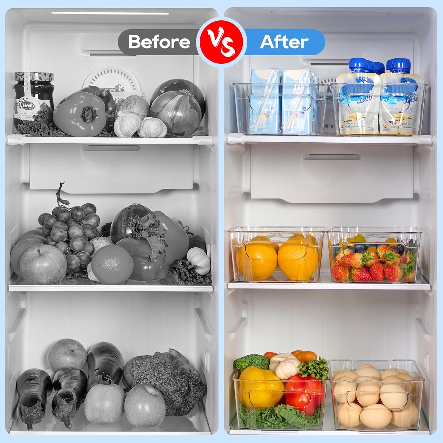 - Multi-Use: Suitable for refrigerators, these organizer bins are also great for organizing your kitchen, pantry, bathroom, office, or any space that needs a little extra order. Keep your home clutter-free and streamlined