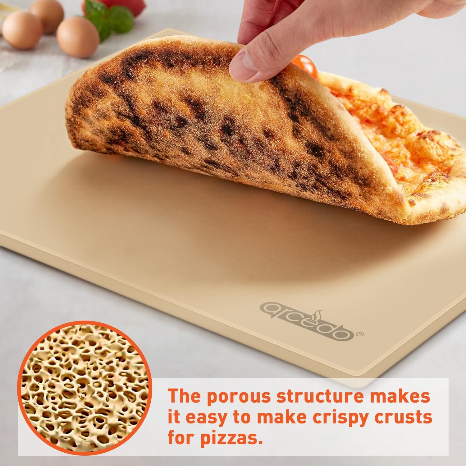 - BREAD STONE FOR OVEN - The porous structure of cordierite material allows it to absorb moisture from the dough, preventing the crust from becoming soggy and ensuring a crispy texture. It's perfect for making not only pizza but also bread, pies, and many other baked goods.