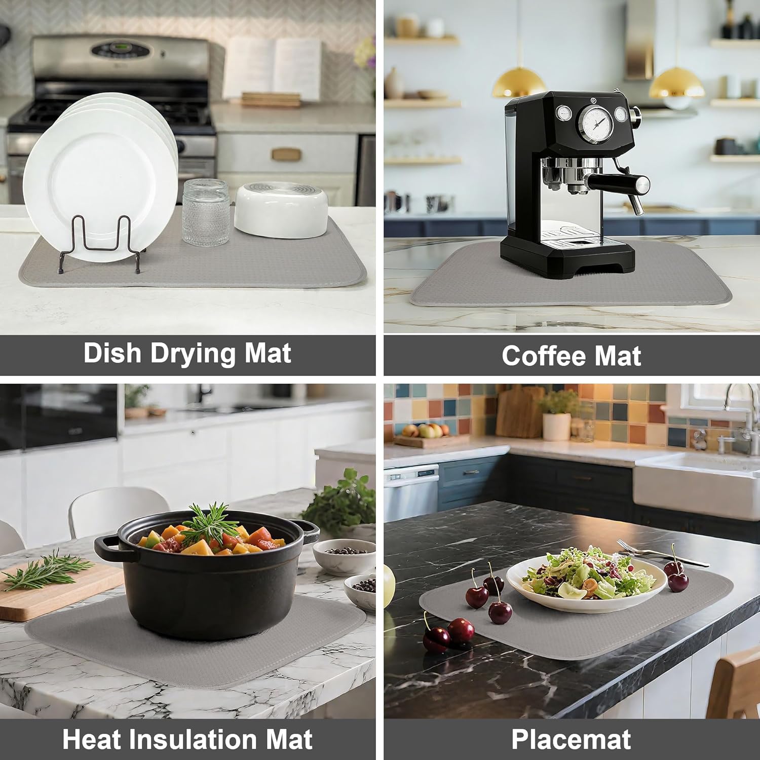 2 Pack Dish Drying Mat, Dish Drying Mats for Kitchen Counter, Microfiber Dish Dryer Mat, Large 20" x 15" Drainer Mats, Highly Absorbent, Machine Washable (Gray)