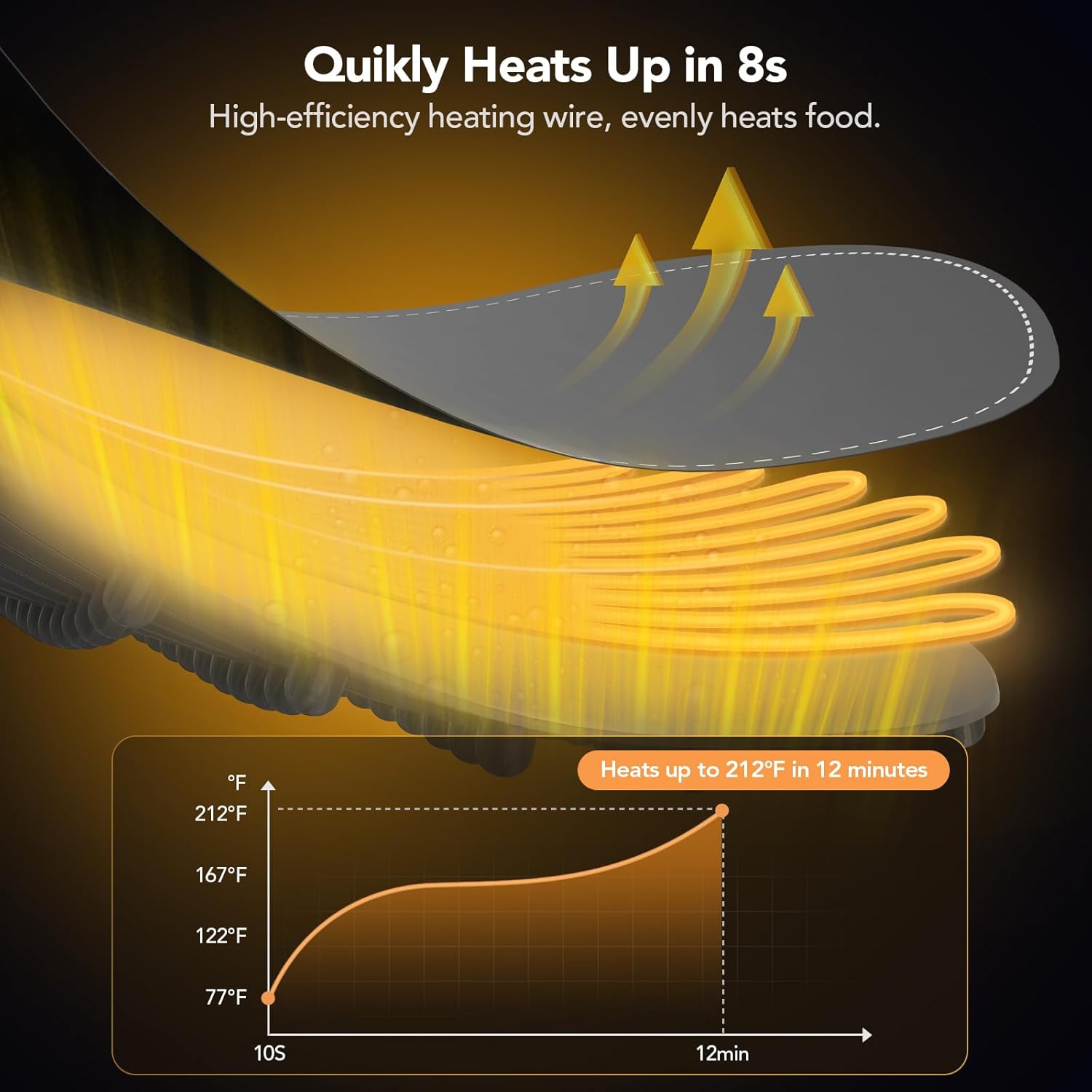- [Durable & Easy to Maintain] Crafted from premium flexible silicone, our silicone electric heating tray is built to last. It's splash-proof, stain-resistant, and oil-resistant, and can be easily rolled up for storage. Cleaning is a breeze with just a quick wipe