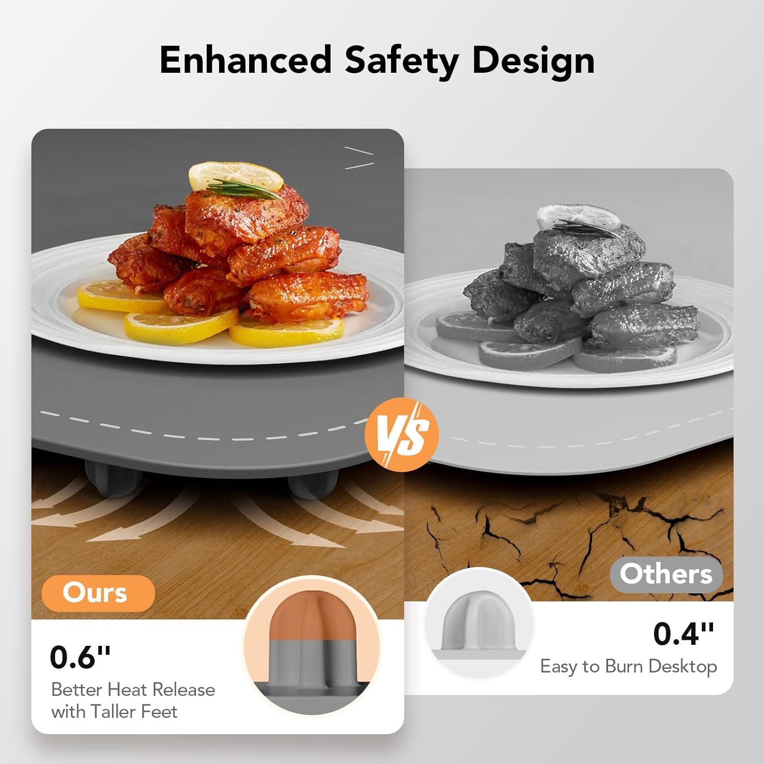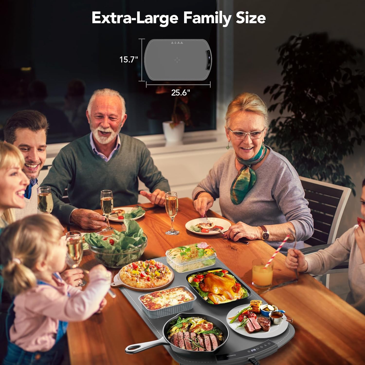 - [Customized Comfort] Dial in the perfect temperature with our 9-level temperature-controlled food warming mat. The 4-hour auto shut-off feature ensures convenience and caters to a variety of food preferences for a smooth dining experience