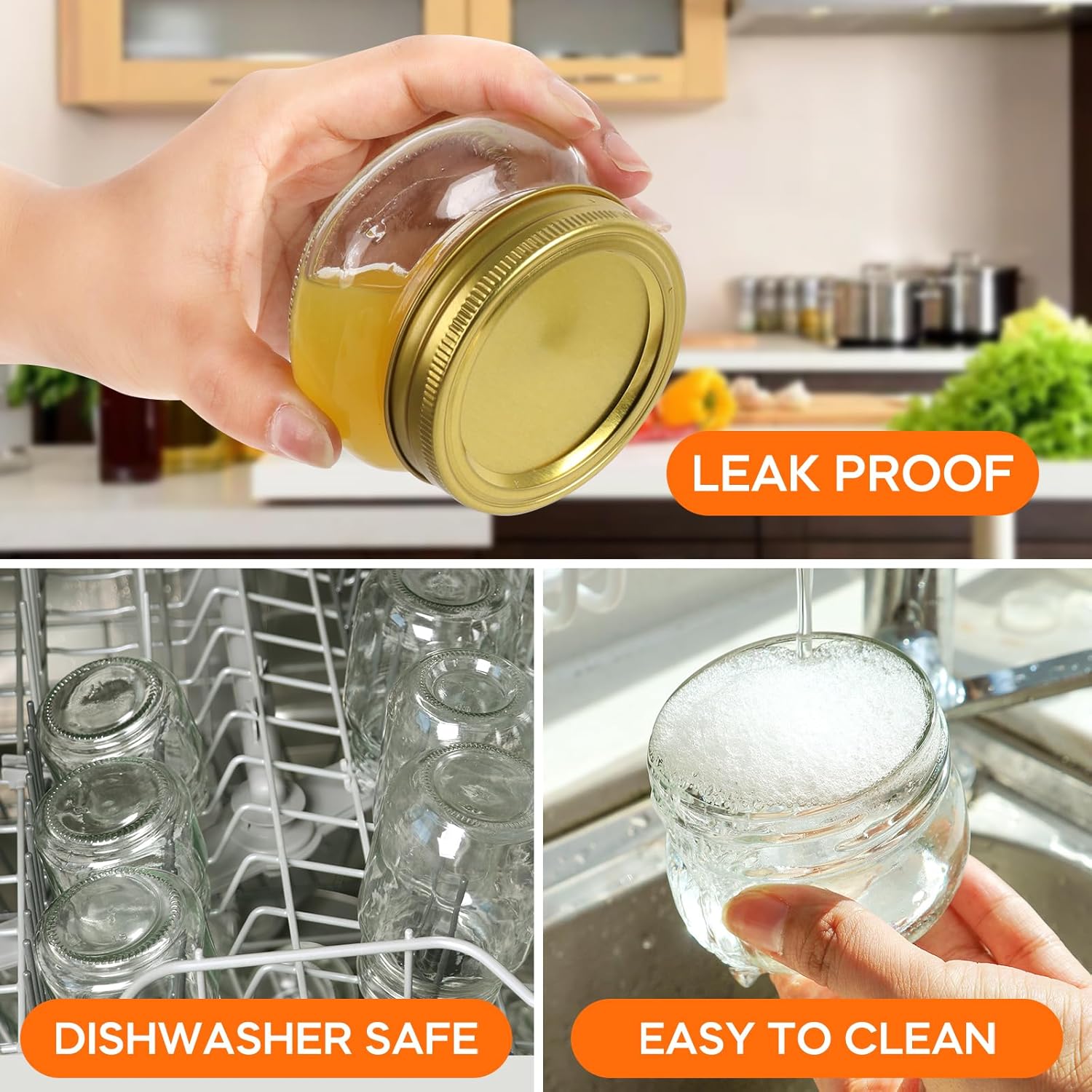 - PREMIUM MATERIAL & DURABILITY:Crafted from thick, high-quality glass , 4oz Mason Jars reinforced for long-lasting use and lead-free, making it safe for storing food items. They are safe for microwave heating and dishwasher cleaning (without the lid), ensuring convenience in daily use