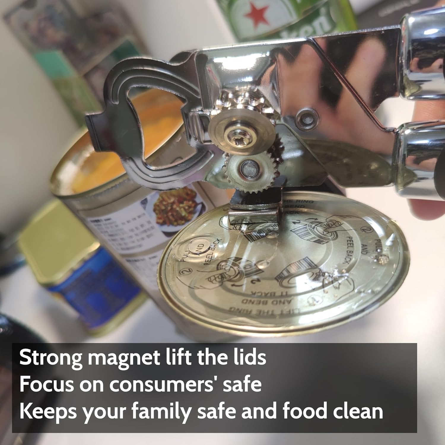 - Magnetic Lift: Strong magnetic suction lift the lid after opening the cans,Once the lid has been cut, use the magnet built-in to pull the lid out,it keeps your fingers safe and food clean.Durable construction,Made of heavy-duty stainless steel with smooth edges to prevent scratches and rust.Handheld and portable, perfect for kitchens, camping, and on-the-go use.Itβs best manual can opener suitable for left handed and right hand can opener very safety. DeeKleen can openers hand held,hand can opener manual,swing away can opener.