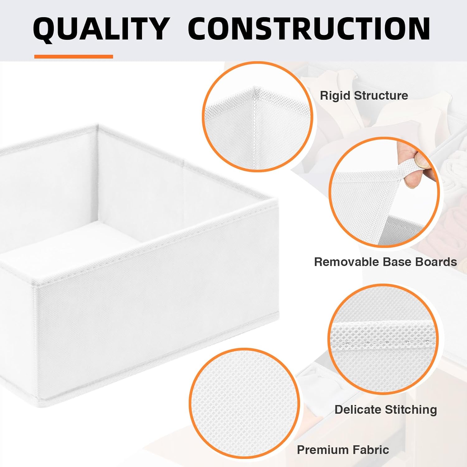 - ăQUALITY STRUCTUREăThese dresser drawer organizers feature robust non-woven fabric and expert stitching for extra durability. Enhanced with sturdy boards on the sides and bottom, these organizer bins stay rigid for years. Odorless and perfect for nursery baby clothes storage.