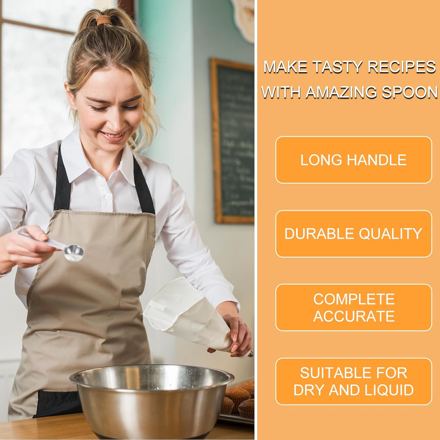 - 【Easy to Clean】In addition to the thoughtful design, our long handle measuring spoons are also very convenient to clean and maintain. Whether it is a simple hand wash or automatic cleaning in the dishwasher, it can be easily handled. After use, just wipe it clean and keep it dry to ensure the long-term cleanliness and service life of long handle tiny measuring spoons