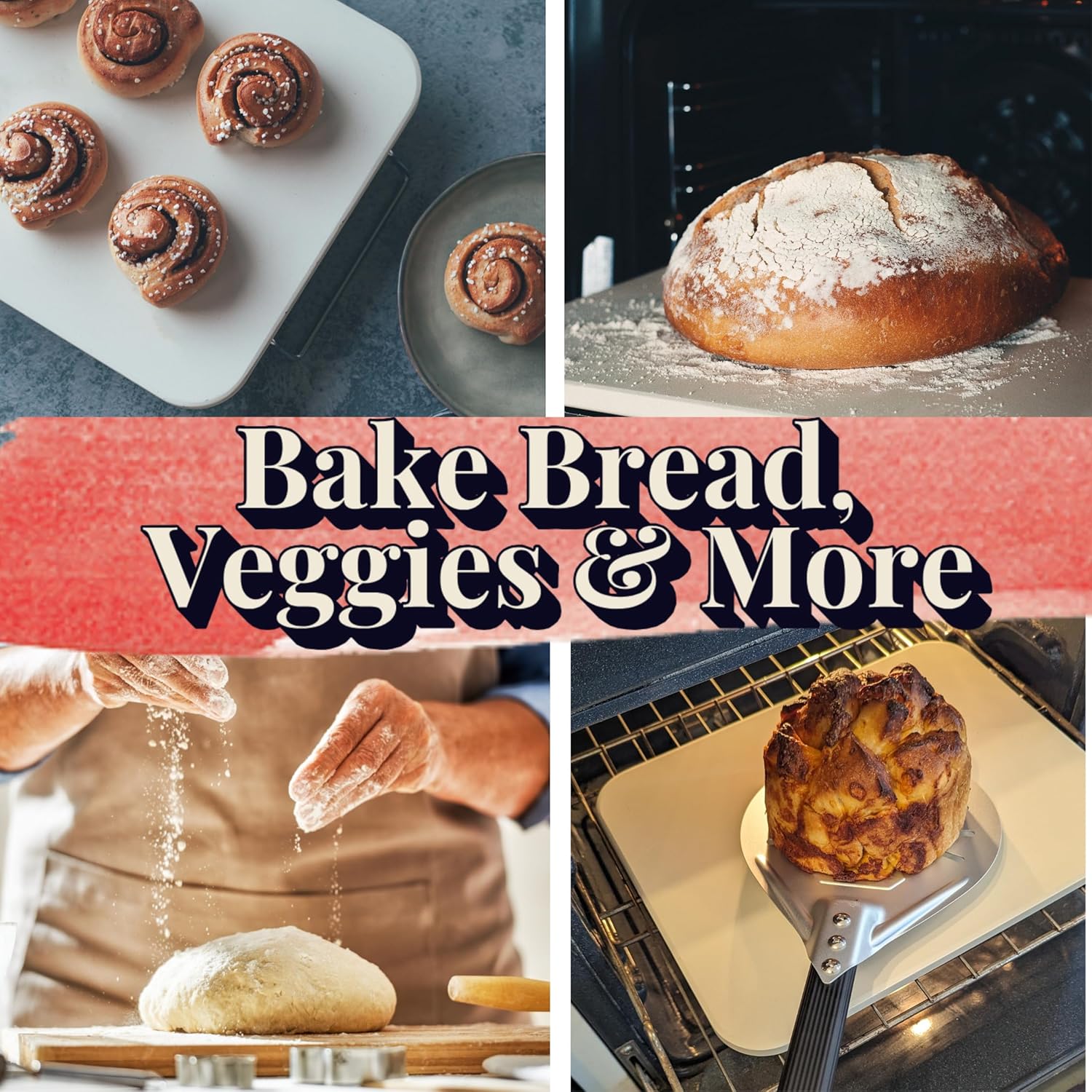 - EASY TO USE & VERSATILE: Beyond just pizza, our pizza oven stone offers endless possibilities. Use it as nonstick bread stone for oven, biscuits, cookies, pastry, and more. The handles can be flipped to rest the hot stone. And the pizza peel doubles as a cutting board or serving tray.
