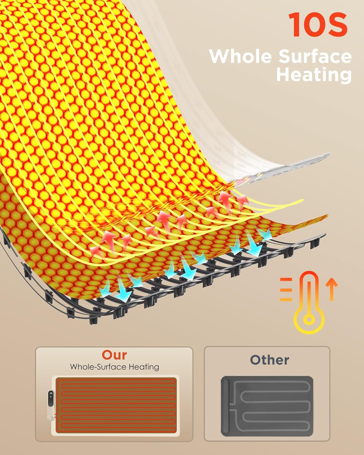 - 【10s Rapid Full-Surface Heating】Our electric warming tray features advanced upgraded heating technology with fully covered, evenly distributed heating wires. It achieves uniform heating across the entire mat in 10 seconds, less waiting for gatherings and meals, keeping your dishes warm