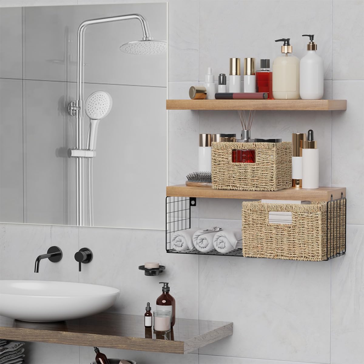 - Multiple-use Woven Basket: These storage baskets are ideal for books, magazines, toilet papers, towels, makeups, fruits, snacks storage. Additionally, it can be used in bathrooms, vanities, entryway tables, bookshelves, kitchen counters, or office desks, demonstrating its versatility in numerous situations