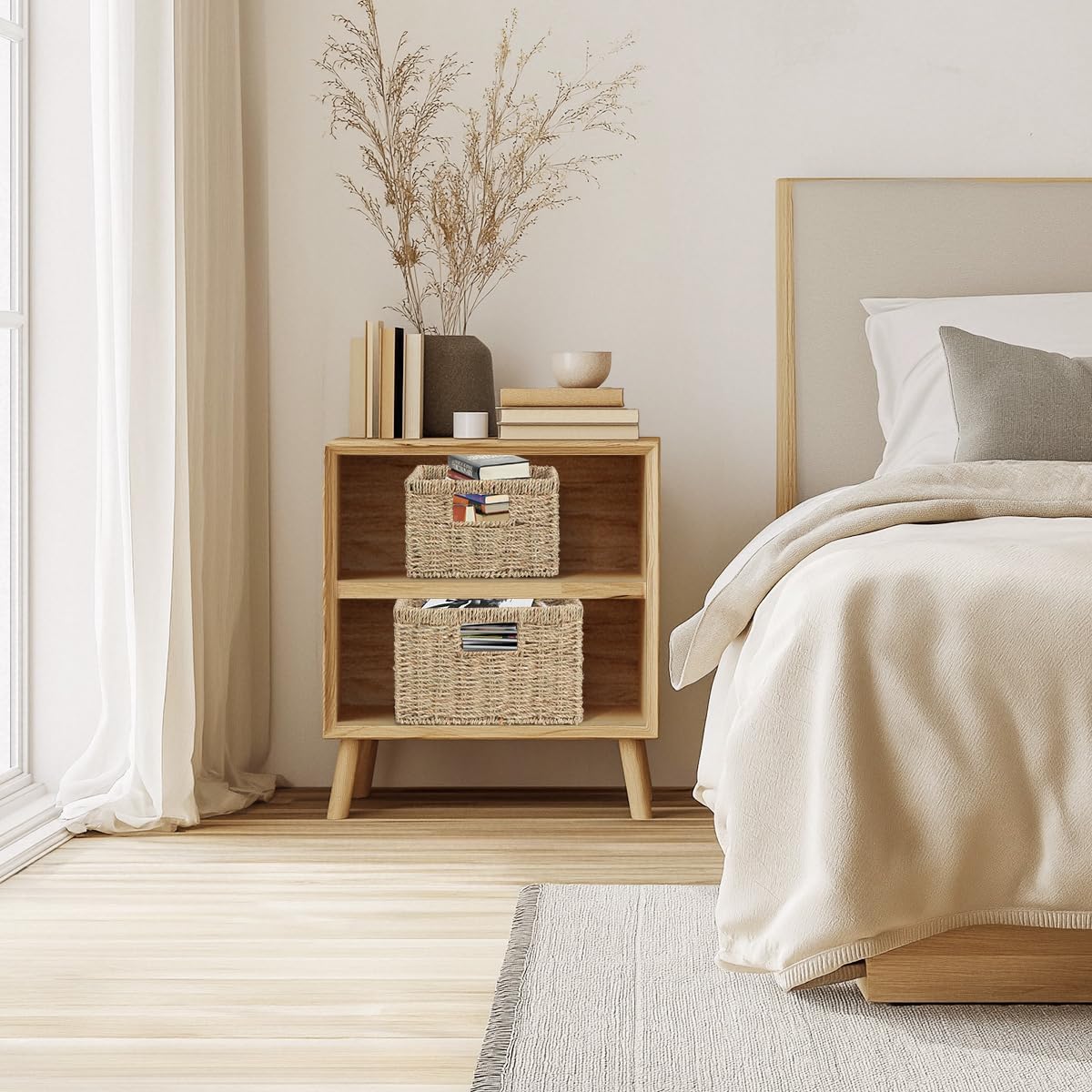 - Natural and Space-saving: The special design of these rectangular wicker containers makes them more expressive of natural beauty, and you can use these wicker storage baskets to keep your living room and other rooms organized, save space, and keep things tidy