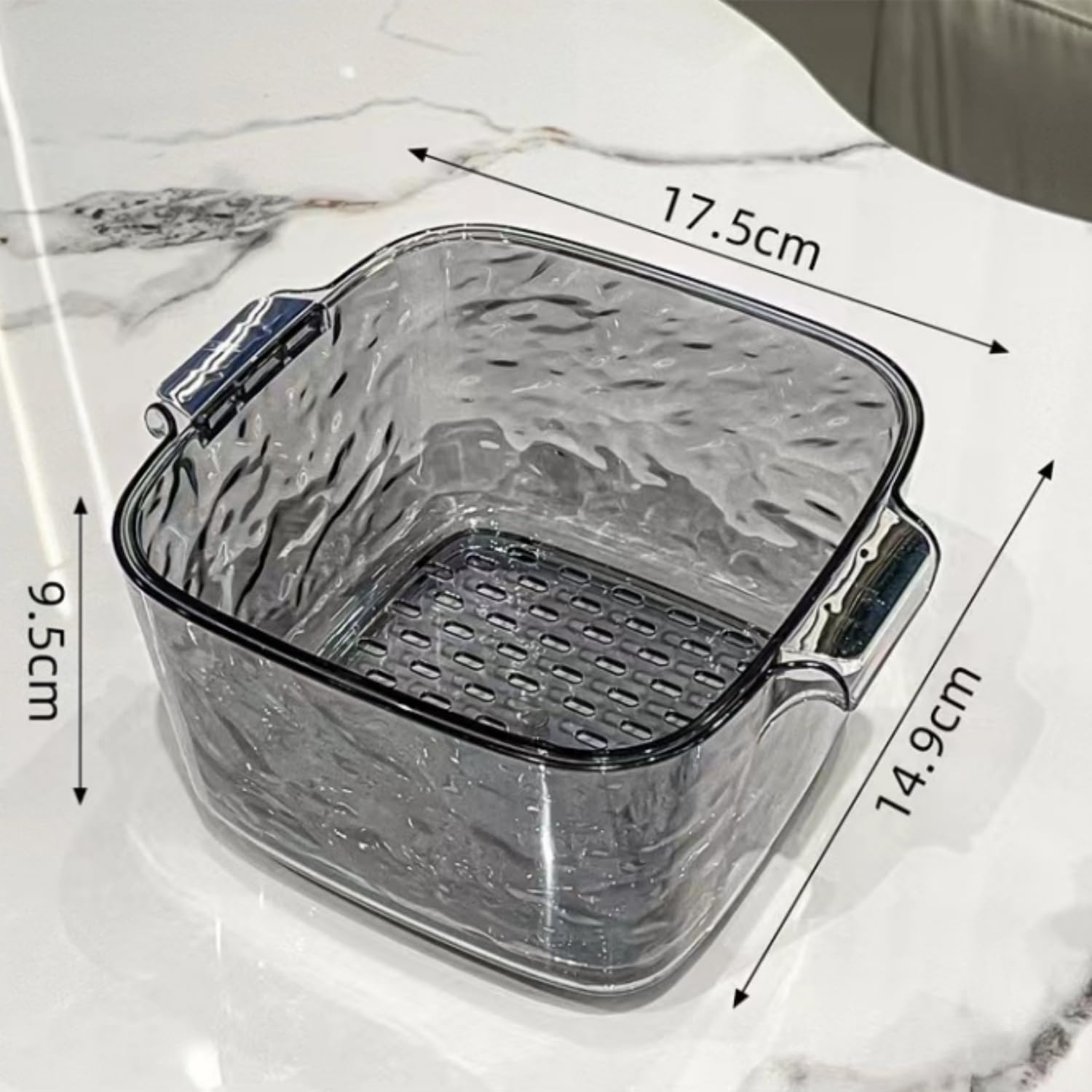 - Package: This double layer drain basket measures at 17.5cmx14.9cmx9.5cm,enough space for washing and draining fruits or vegetables