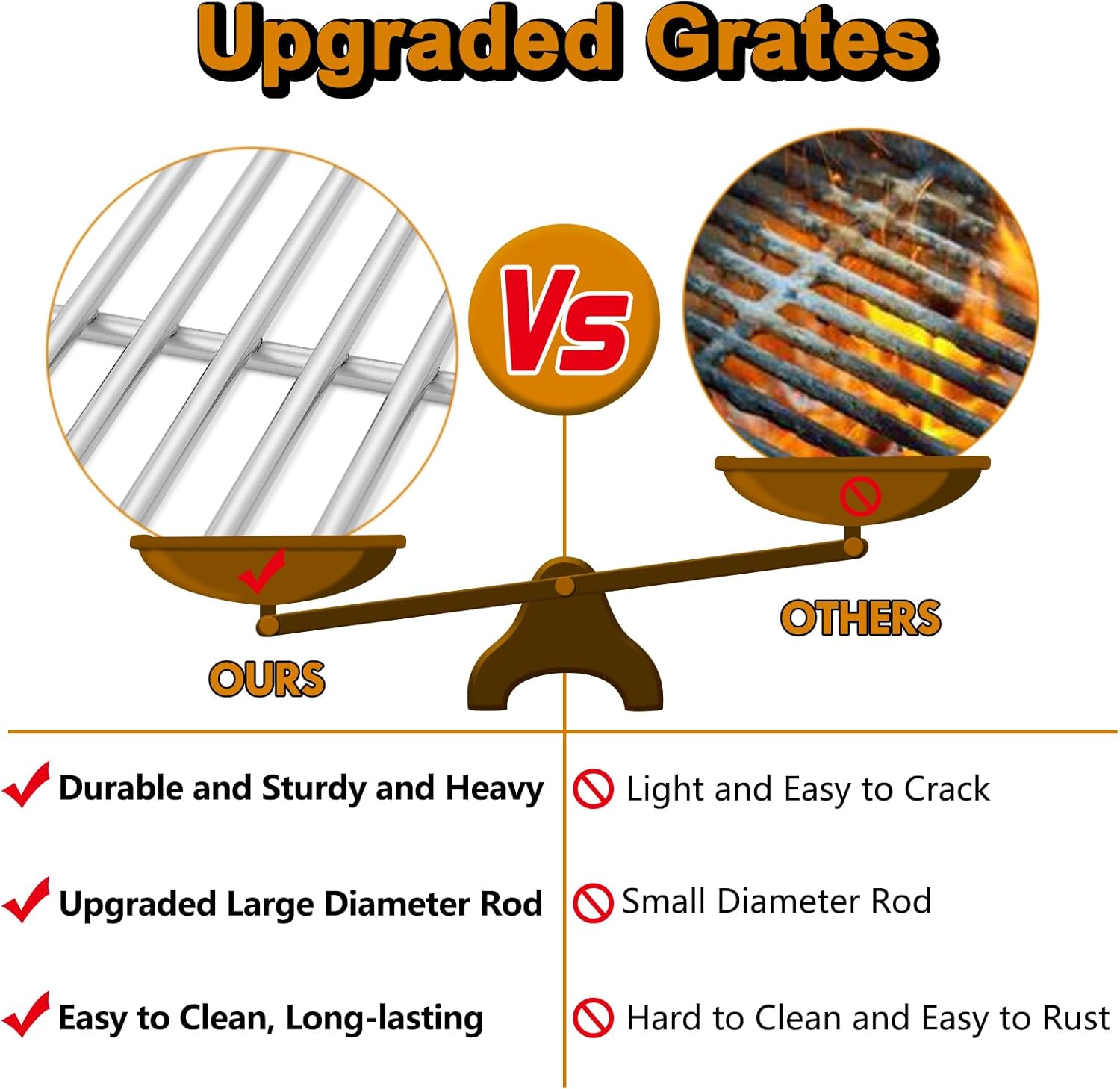 - 【Heat Transfer Evenly】 The kitchenaid grates replacement provide good heat retention, excellent heat transfer, even cooking temperature and bold sear marks, kitchenaid bbq parts help to increases the smokiness and improves the taste of grilled food, durable and sturdy without distorting or degrading over time