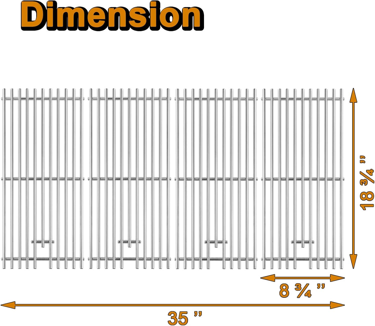 - 【Dimension and Package】 8 3/4’’ x 18 3/4’’ per kitchenaid 740-0781 grates, Total 35’’ x 18 3/4’’ for 4 Pcs kitchenaid grill replacement parts (Please make sure the size and package is perfectly fit your kitchenaid gas grill replacement parts)