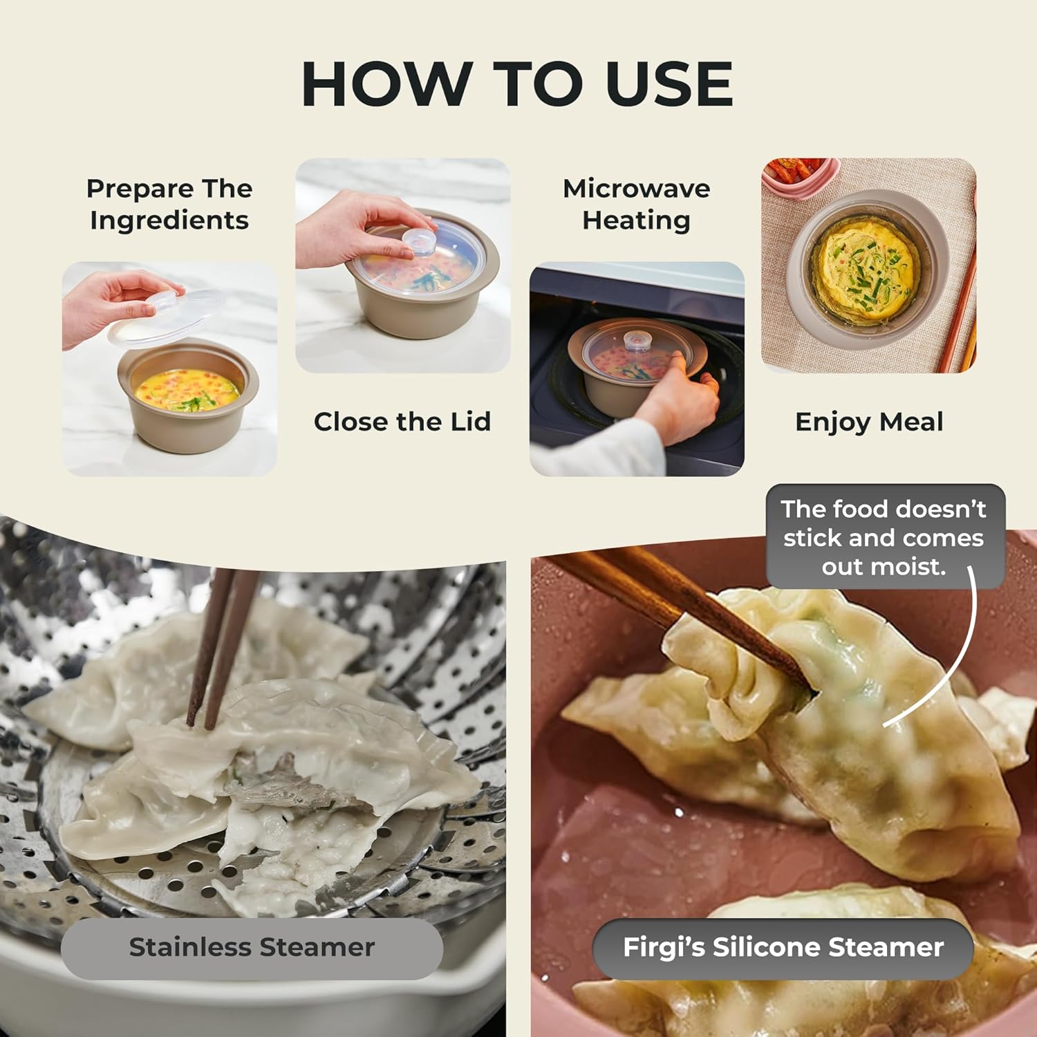 - From Purees to Family Feasts: One pot does it all! Prepare baby food, steam dumplings, or bake banana bread - all in a compact, stylish microwave steamer bowl that fits any kitchen (and comes in trendy colors!)