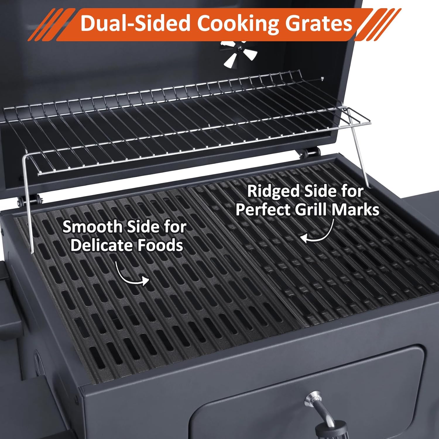 - PROFESSIONAL SEARING: Cast iron's superb heat retention allows for perfect sear marks on your food. Ideal for grilling steaks, burgers, chicken, and vegetables, these grates ensure even cooking with minimal flare-ups.