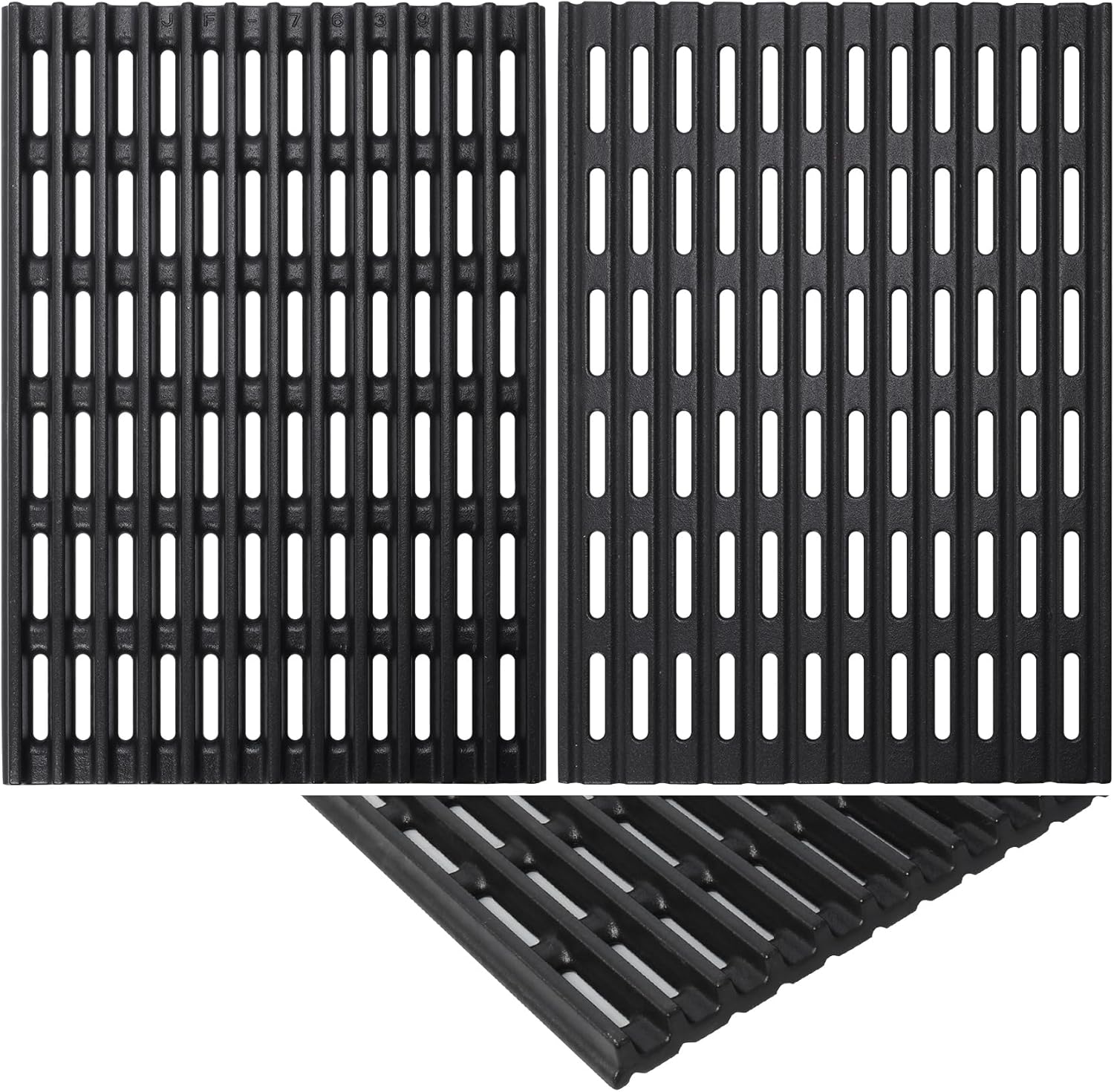 - PREMIUM THICKENED CAST IRON: These cast iron cooking grates are made of high-quality thickened cast iron for enhanced heat retention and even heat distribution. They deliver consistent and professional searing, leaving beautiful grill marks on meats, vegetables, and more. Unlike porcelain grates, they won't chip or rust.