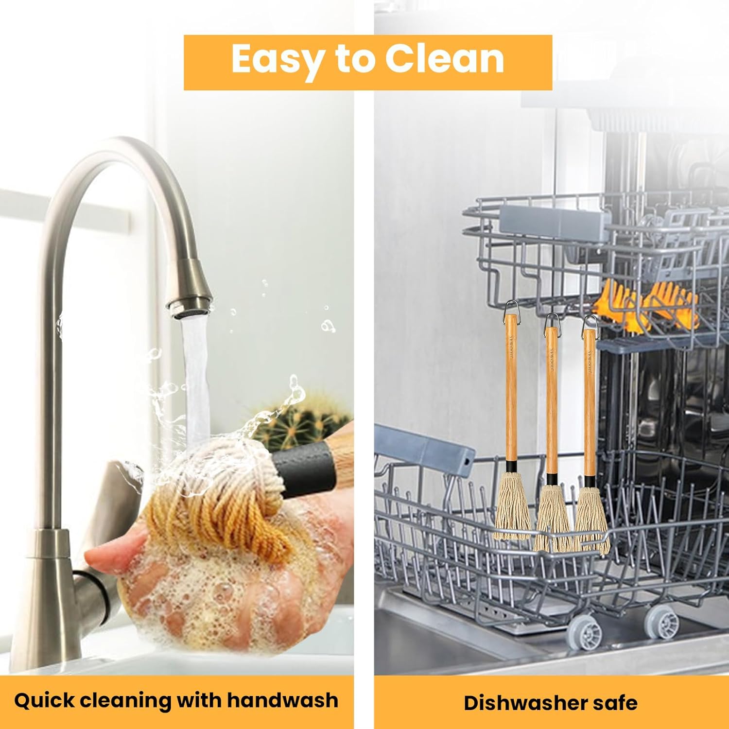 - Wide Applications๏ผThe mop is perfect for slashing different sauces for basting and glazing a variety of meats and poultry. It can also be used as a kitchen clean-up brush, the extra long handle makes it easy to reach bottom of cups, glass bottles and surface of the stove.