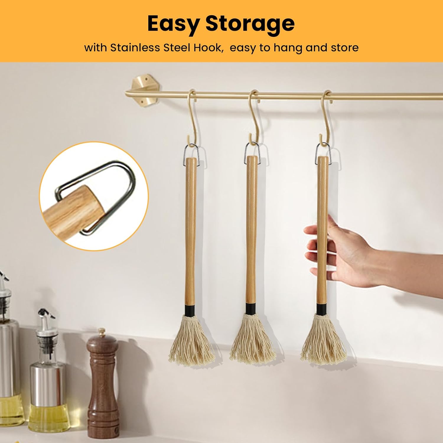 - Unique Design: The mop brush is designed with a wood grip and 6 replaceable heads. 18โ + 14" long brush effectively protect your hands from scalds during grilling. The top of the wood grip is equipped with a hanging hook which is convenient to store.