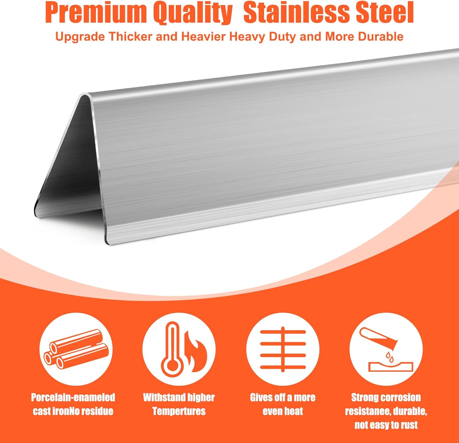 - 【Heat Evenly】Our expert grill parts replacement with heavy duty Stainless steel to ensure long-lasting use, which can distribute heat evenly across entire surface. The porcelain enameled steel heat deflector not only heat evenly and retain heat superbly, but also deliver professional searing, able to produce prominent sear marks and make the food more flavorful.