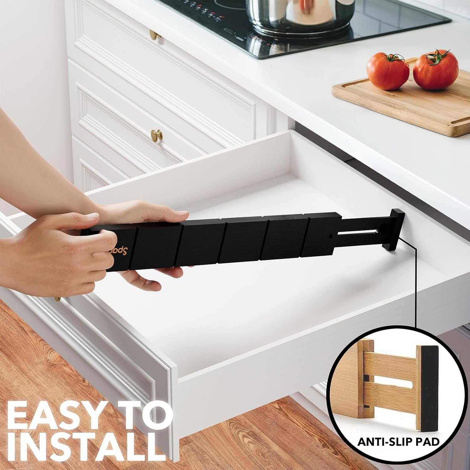 - Drawer Dividers That Stay in Place: Strong spring-loaded design makes them sturdy dividers, with non-slip rubber pads in the end, keeping it stay put all the time and protect your drawers from scratches