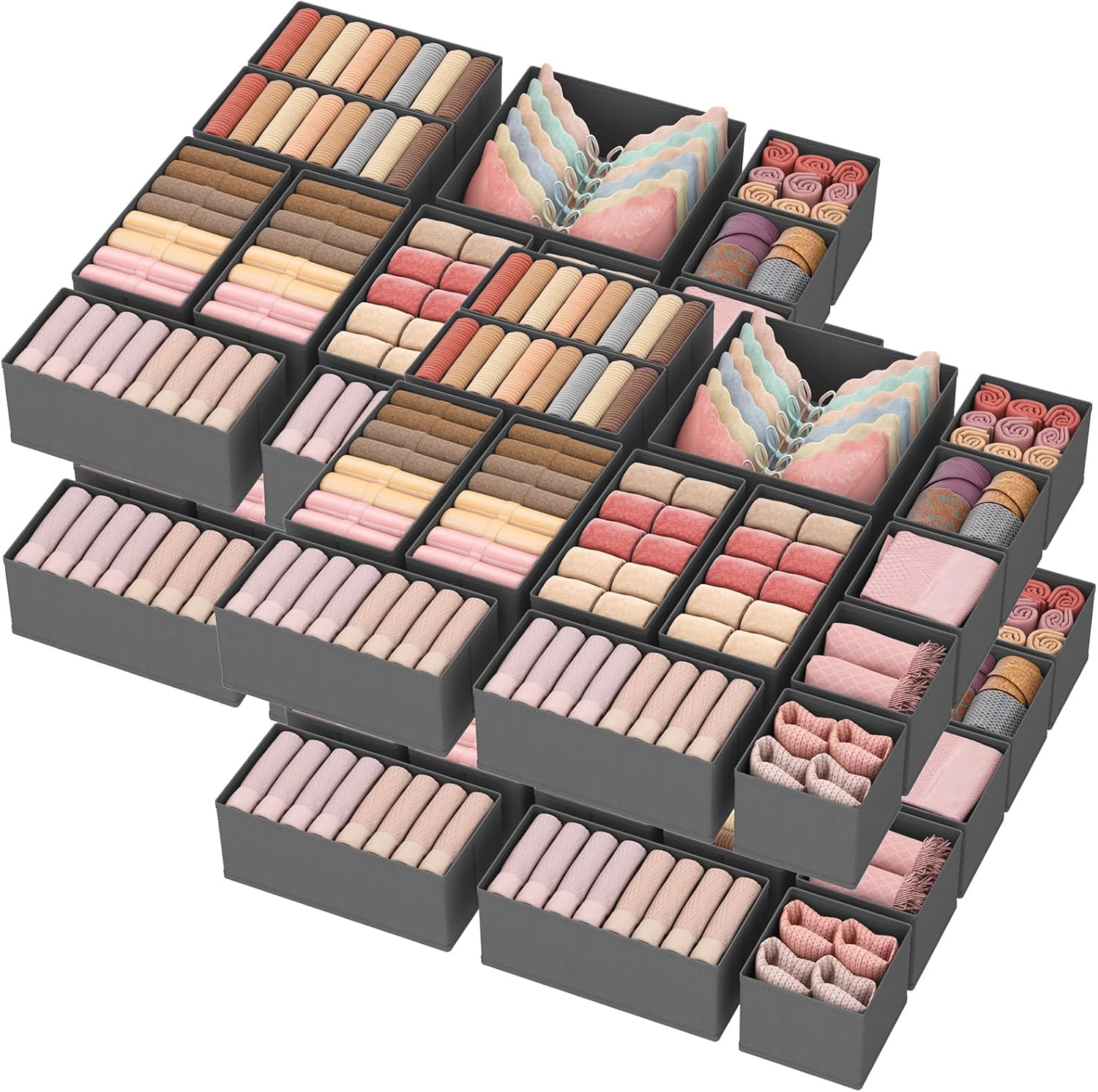 Lifewit Drawer Organizer Clothes for Closet 48 Pack, 3 Sizes Underwear Wardrobe Drawer Dividers, Fabric Foldable Dresser Storage Organizer Bins for Sock/Bra/Lingerie/Undies, Gray