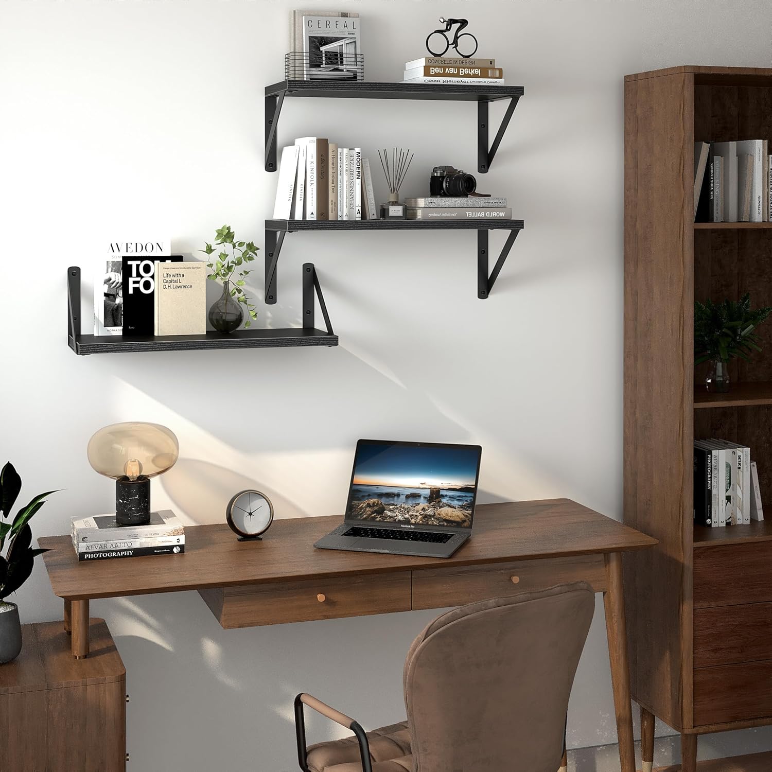Heimlove Floating Shelves for Wall, 16 Inch Long Wood Floating Shelves Set of 3, Wall Mounted Hanging Shelf for Bathroom Bedroom Kitchen, Black