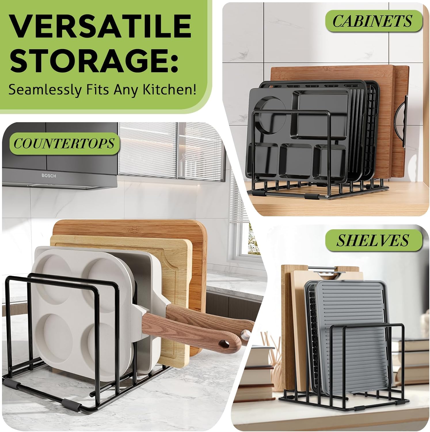 - ๐๐๐ฌ๐ข๐ ๐ง๐๐ ๐๐จ๐ซ ๐๐๐ค๐๐ฐ๐๐ซ๐, ๐๐จ๐จ๐ค๐ข๐ ๐๐ก๐๐๐ญ๐ฌ & ๐๐จ๐ซ๐: Upgrade your kitchen storage with this versatile 5-slot organizer, engineered for baking sheets, cookie trays, muffin pans, and even cutting boards. Whether you bake weekly or daily, this rack keeps your essential bakeware neatly upright and instantly accessible.
