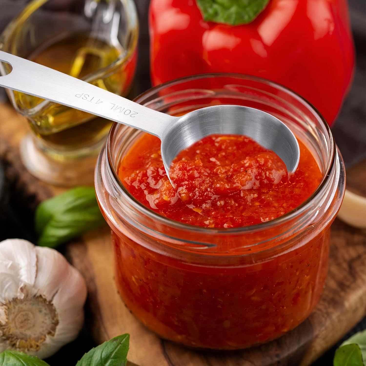 - 【Thoughtful Design】Our 4 tsp measuring spoon is thoughtfully designed, combining the essence of the cup-shaped round head design and the long handle design. This allows the small measuring spoons to easily penetrate into spice jars and other small containers, effectively overcoming the problem of spice spillage and spoon storage, bringing you an unprecedented convenient experience
